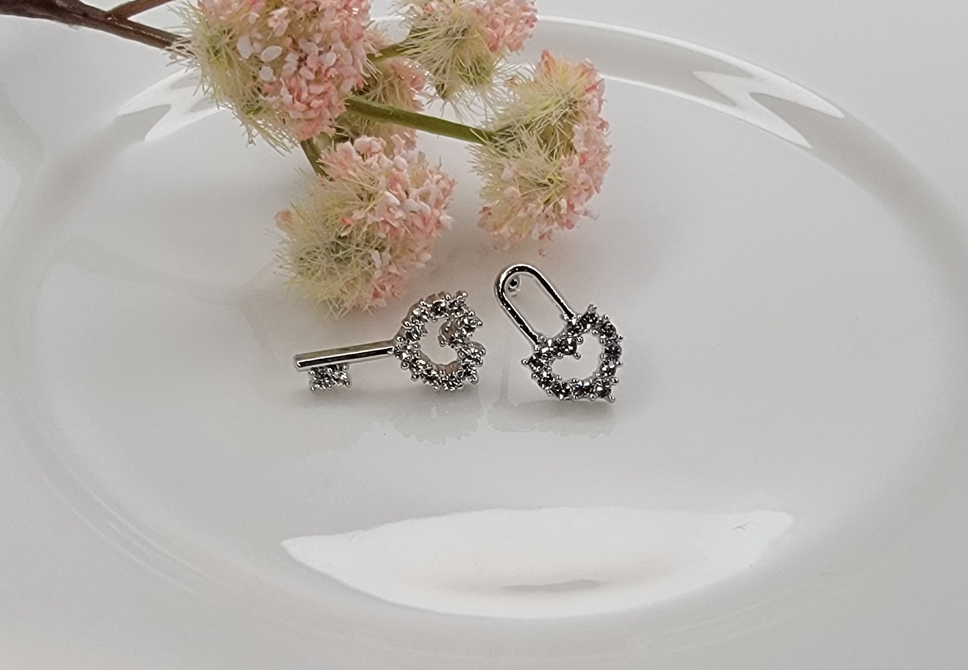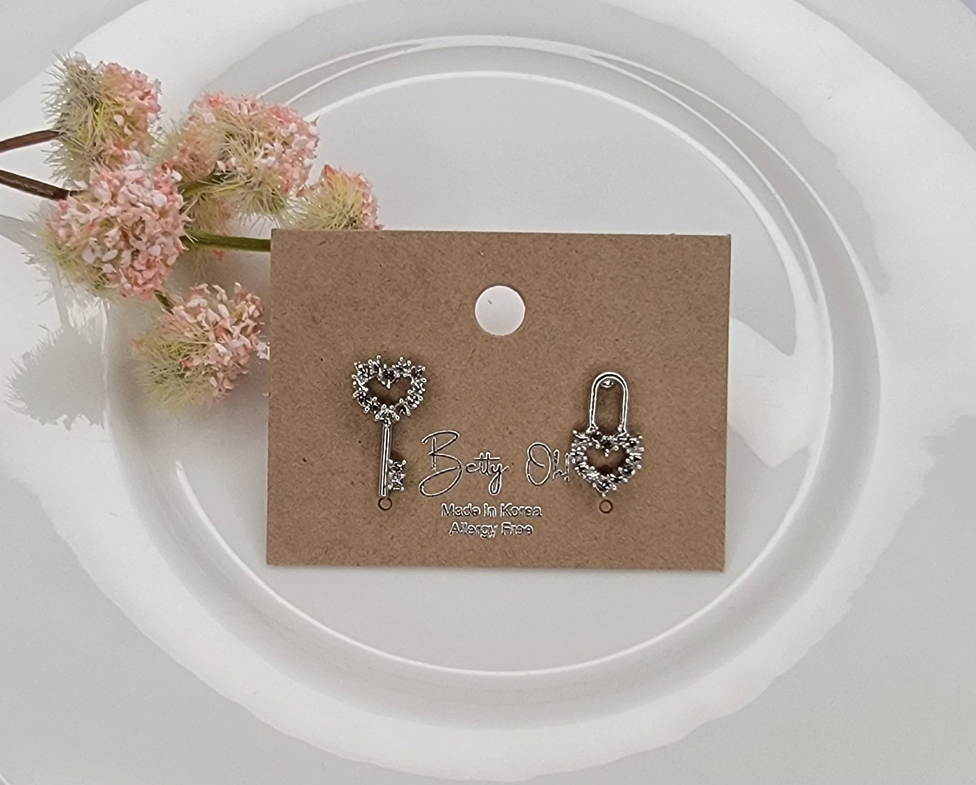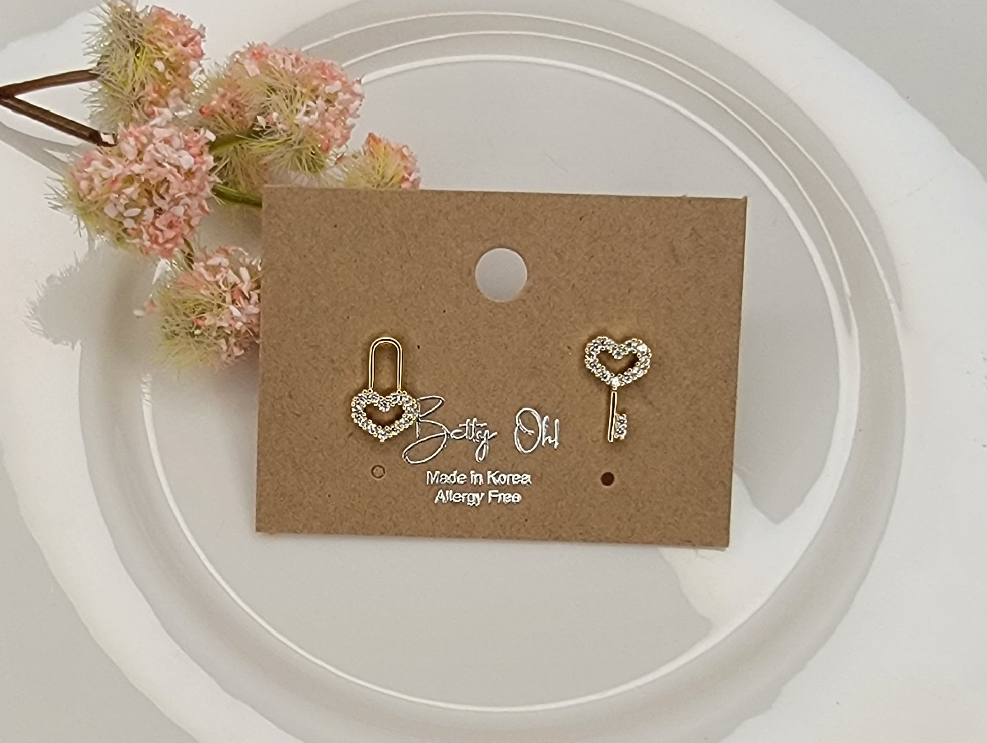 - MISMATCH HEAR KEY & LOCK POST EARRING.
