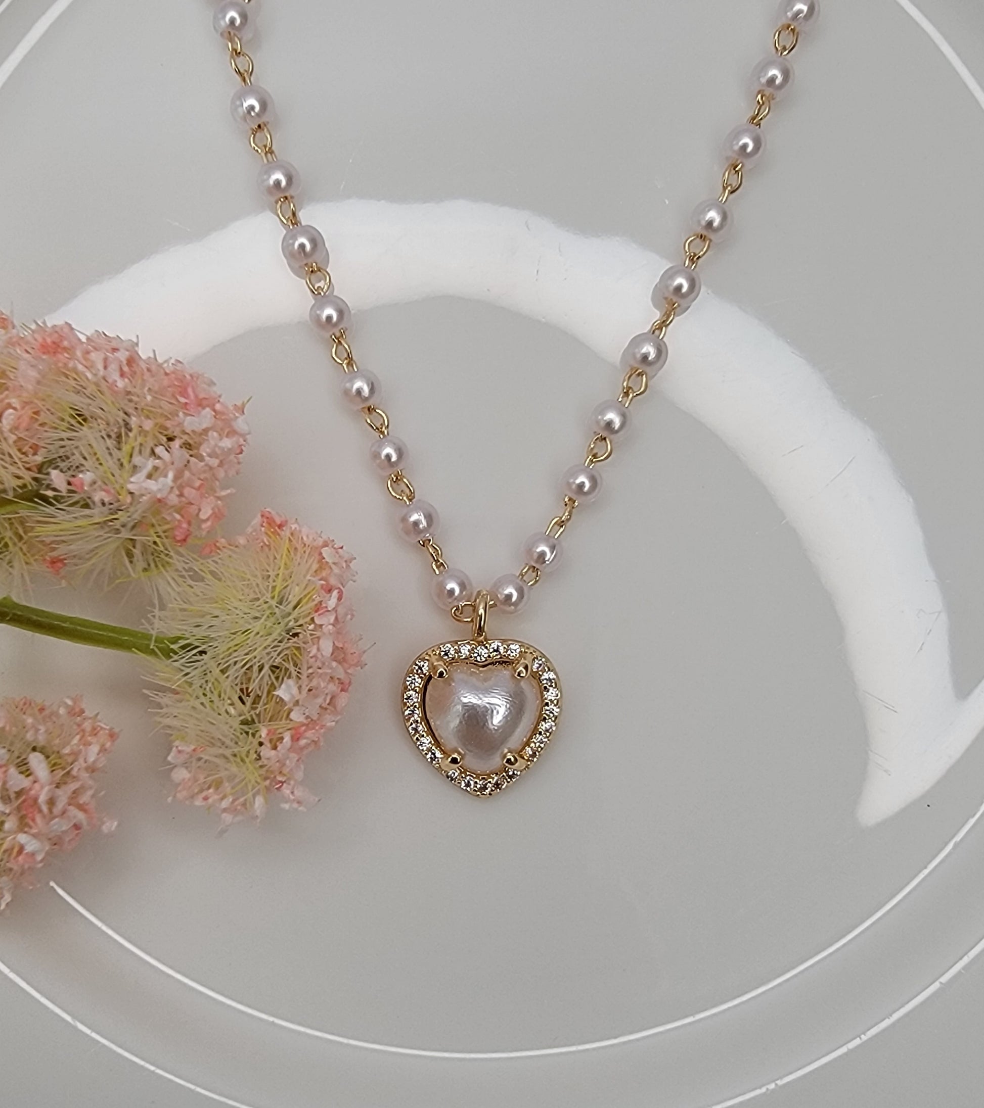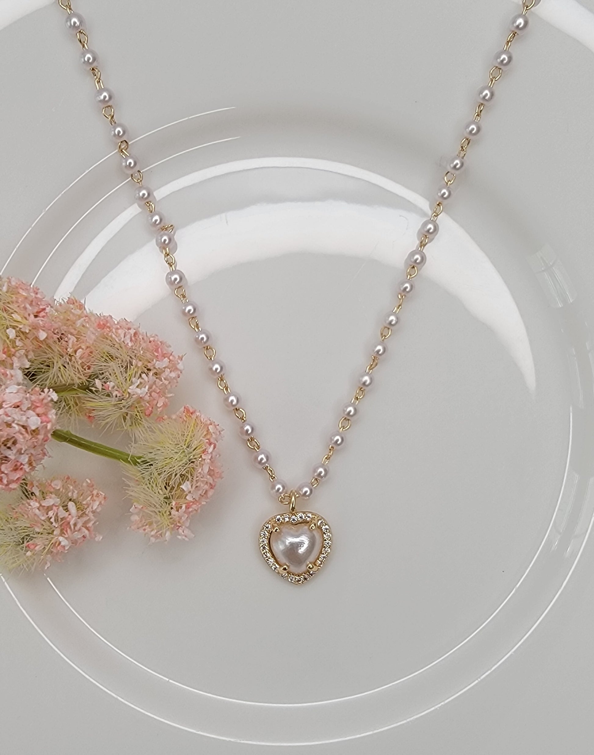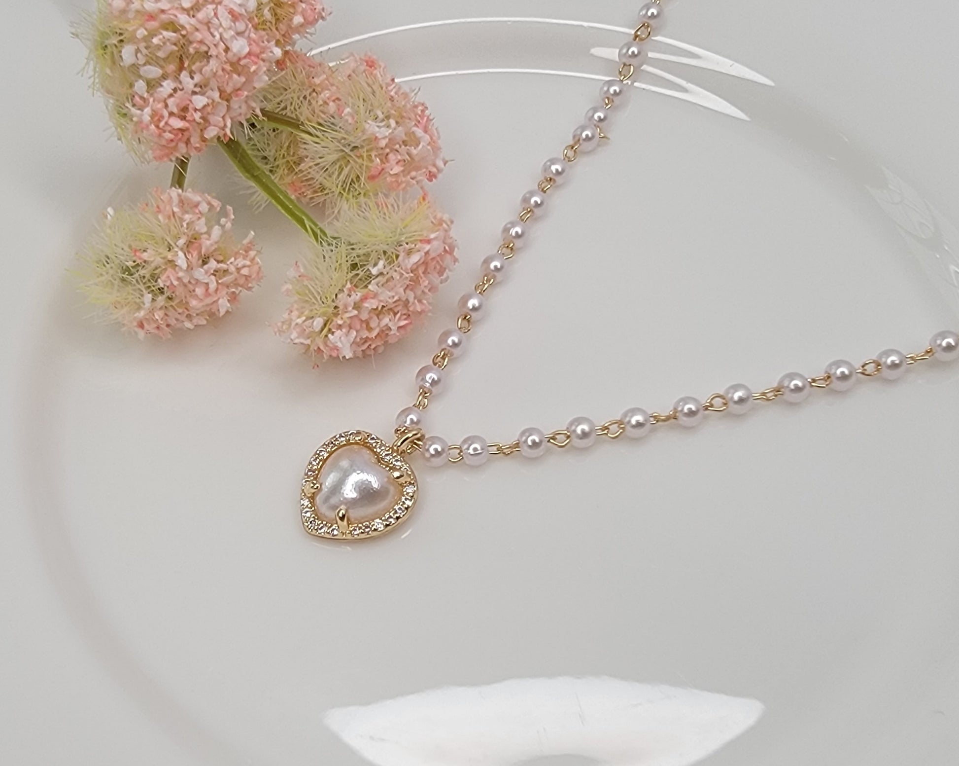 - PEARL CHARM WITH CZ PENDANT NECKLACE.