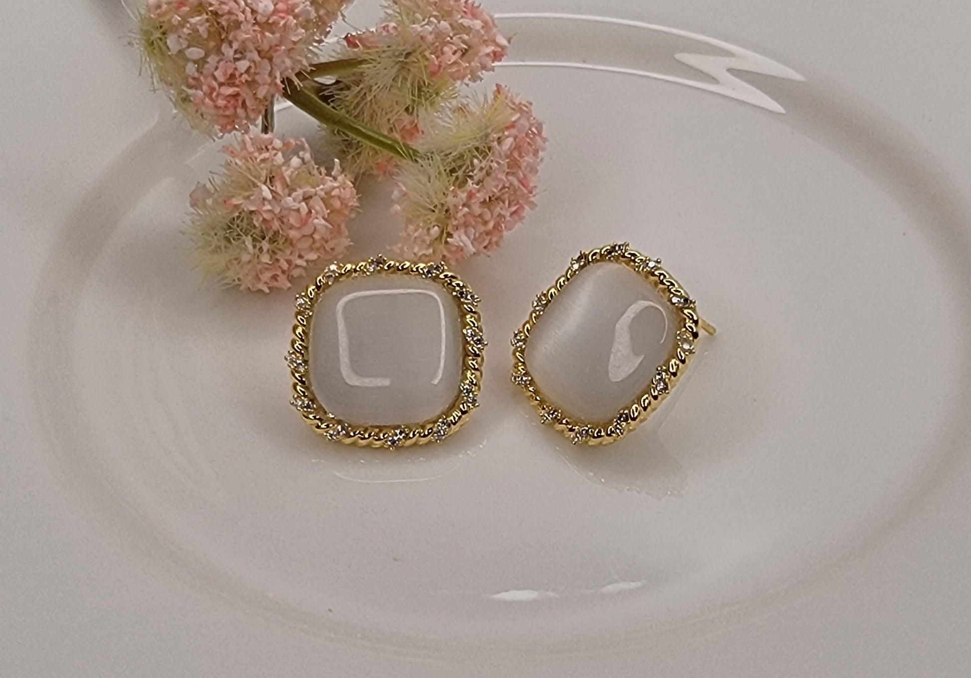 - MATERIAL: SILVER POST, CAT EYE, RHINESTONE, LEAD & NICKEL FREE.