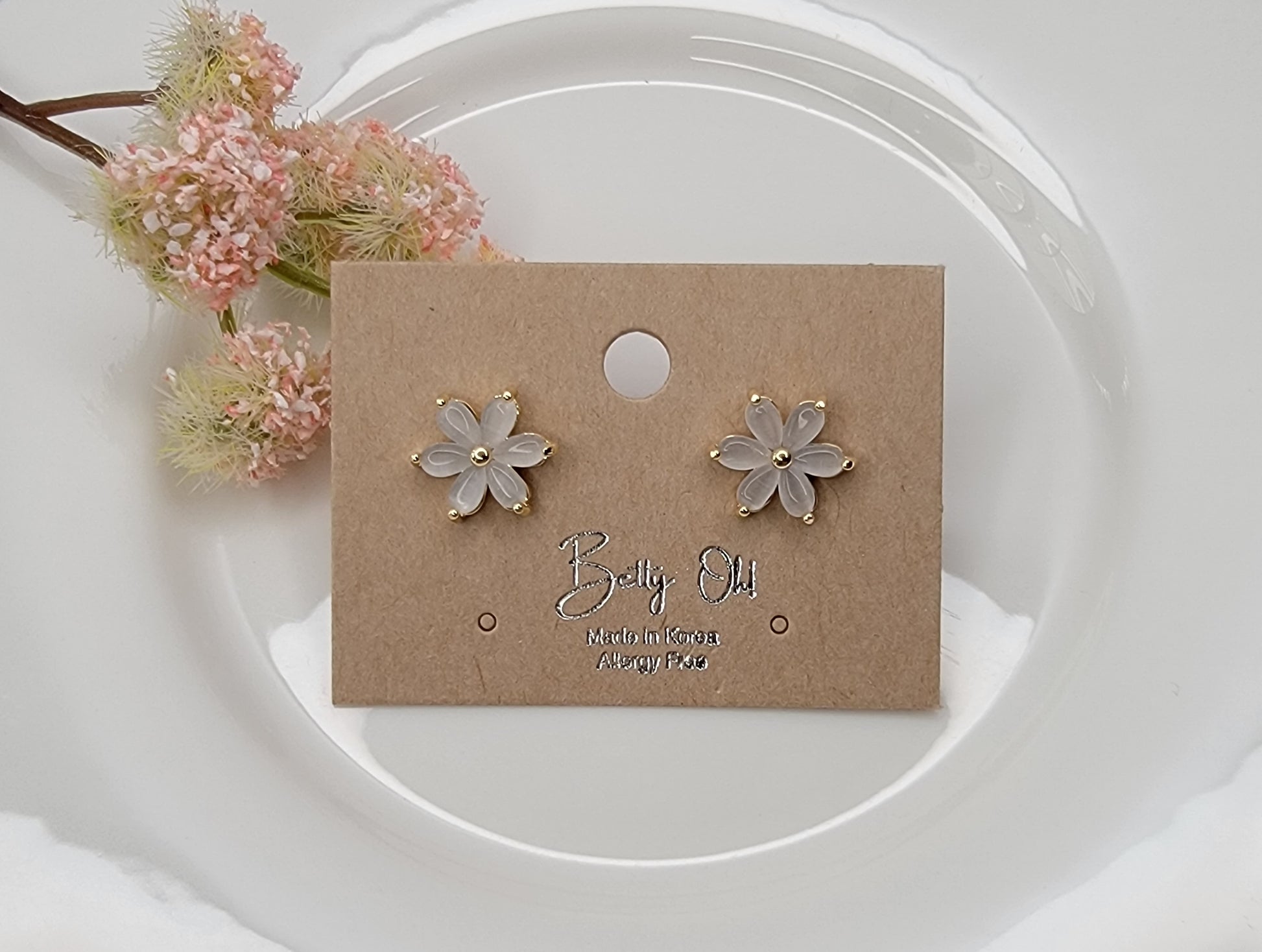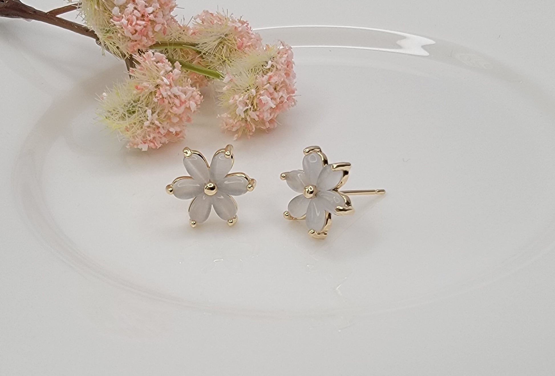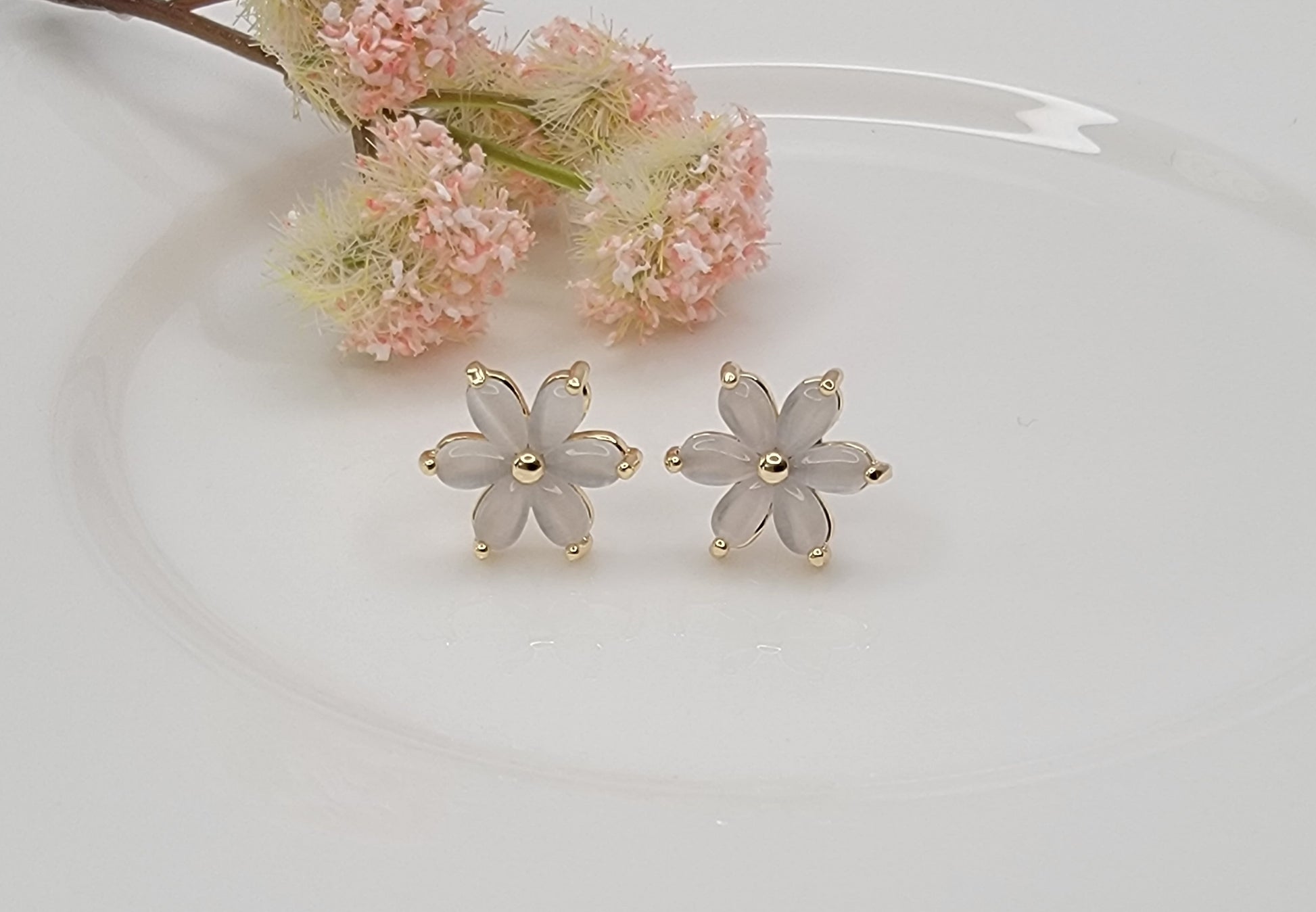 - CATS EYE WHITE FLOWER POST EARRINGS.