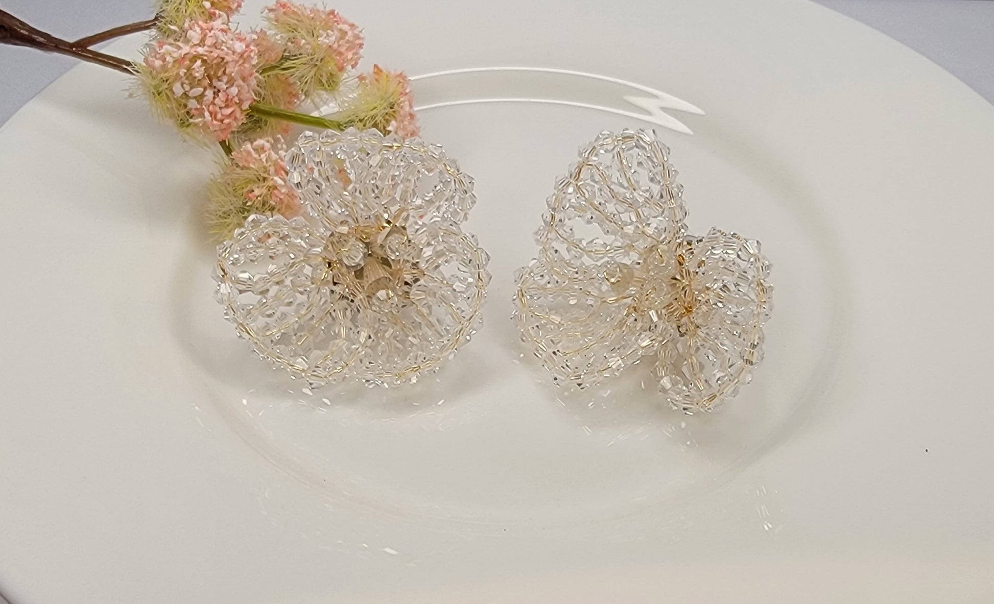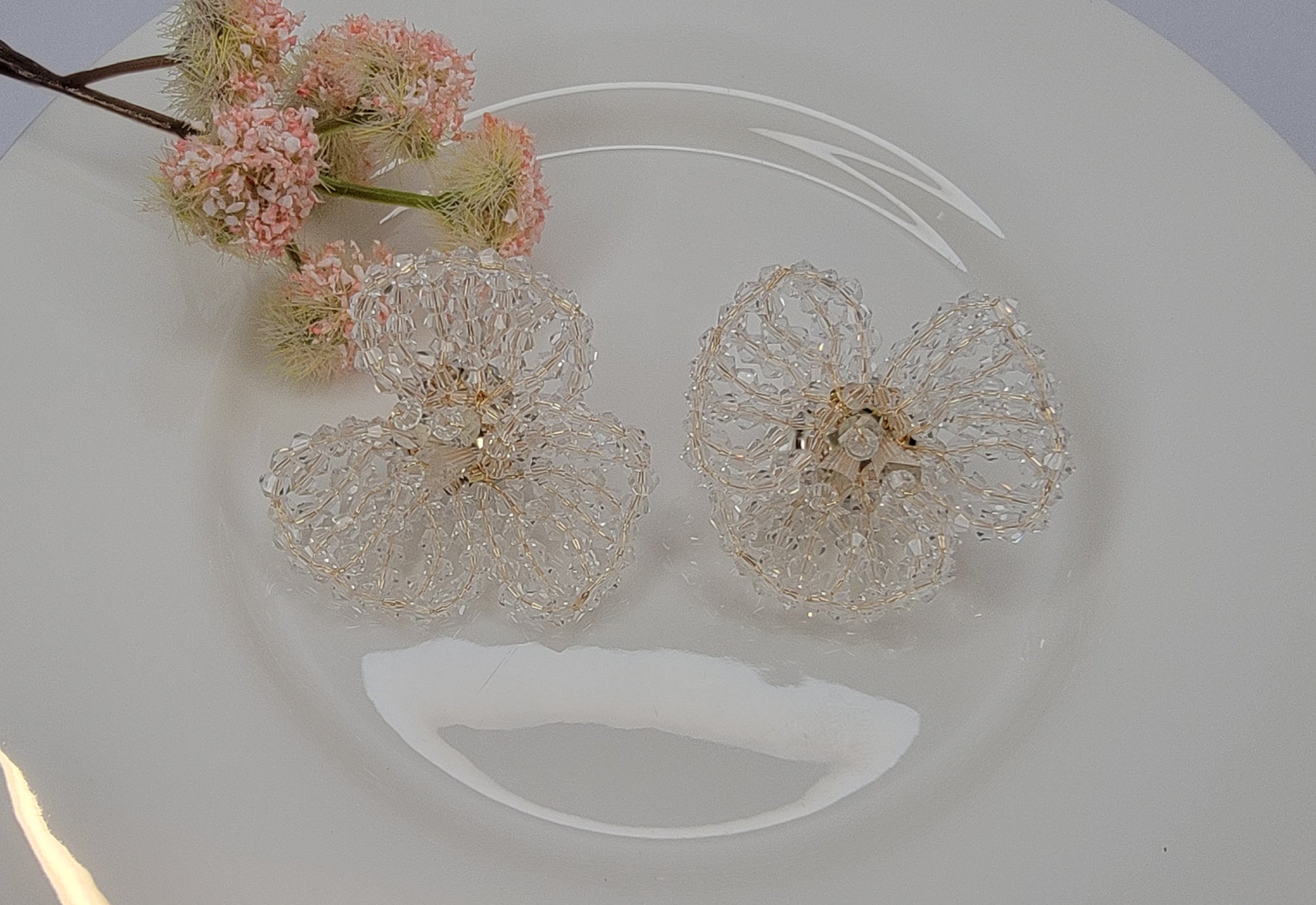 - CRYSTAL BEADED LARGE FLOWER POST EARRINGS.