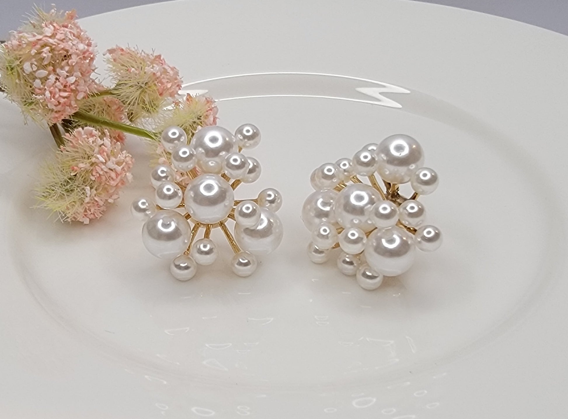 - FAUX PEARL CLUSTER POST EARRINGS.
