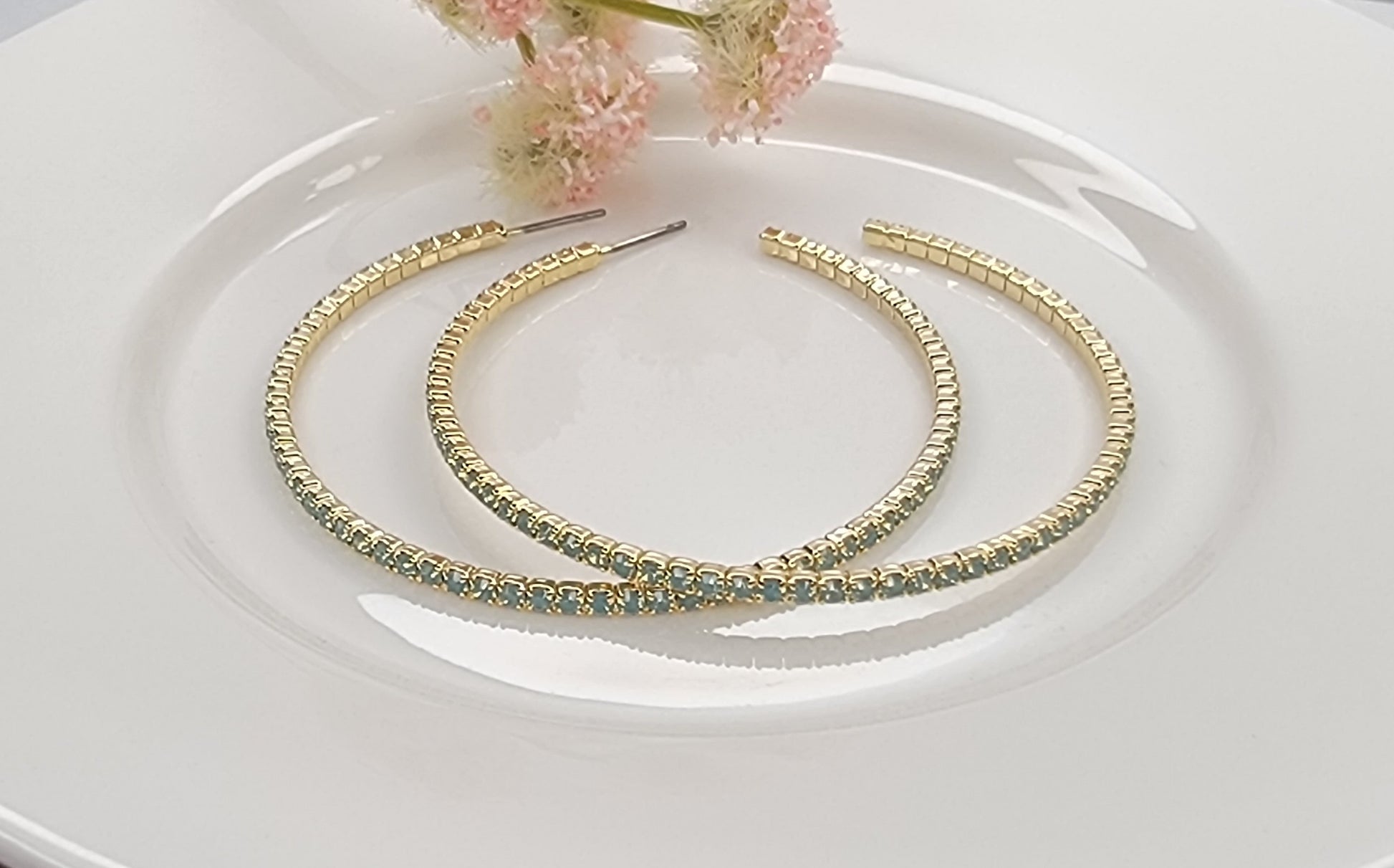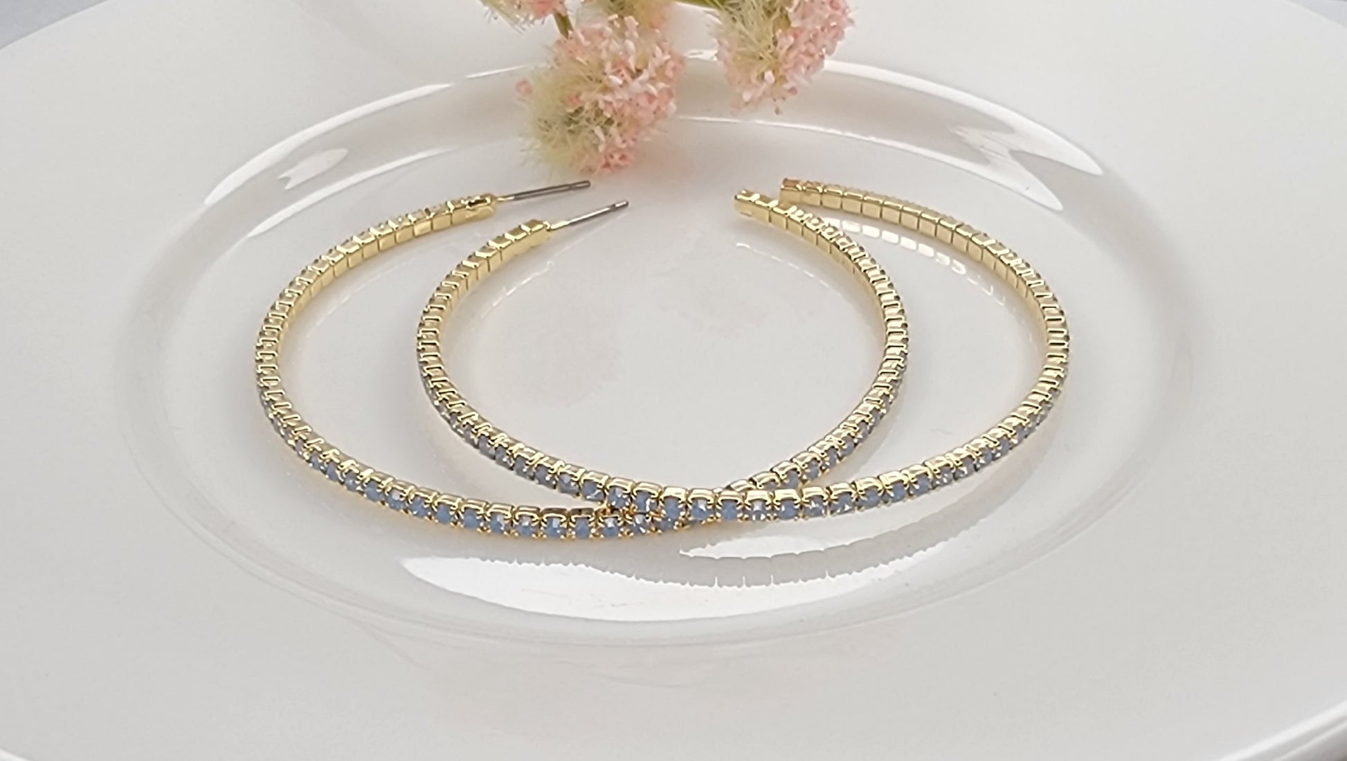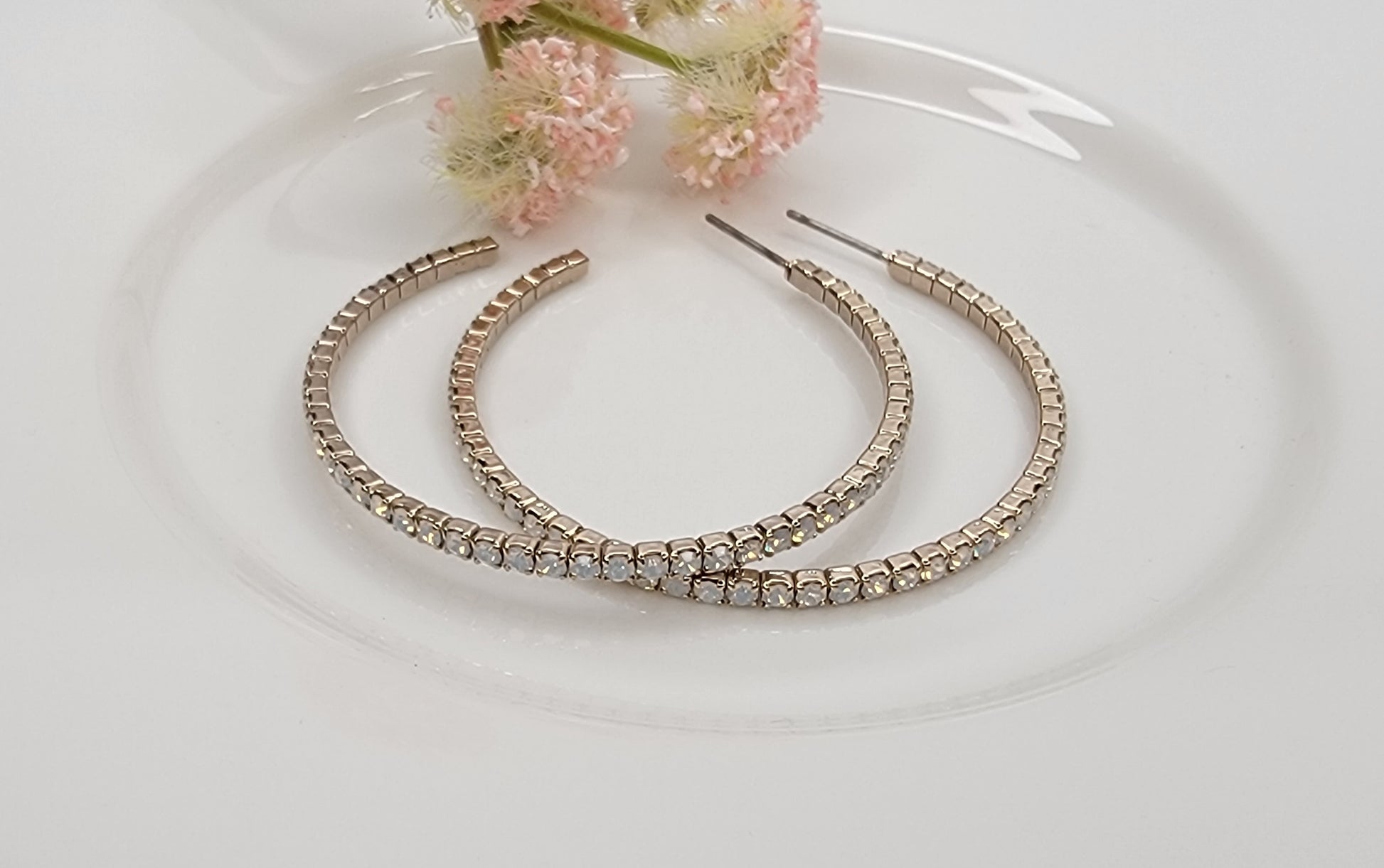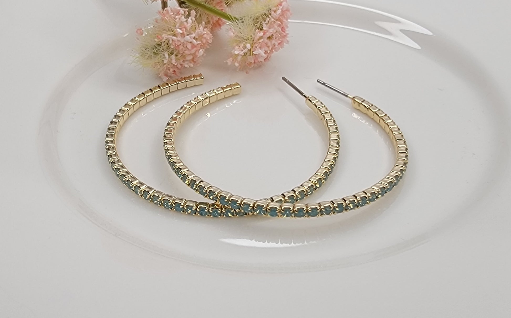 - OPAL SHADE RHINESTONE HOOP EARRINGS.
