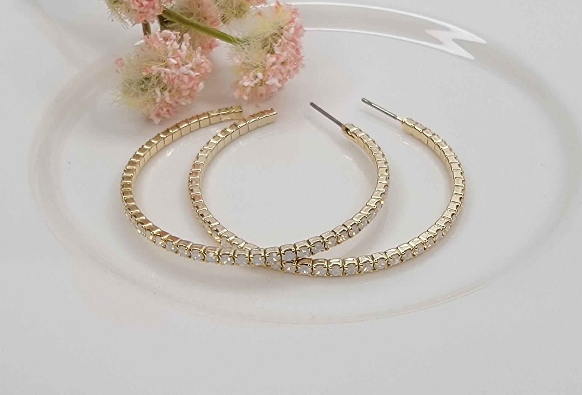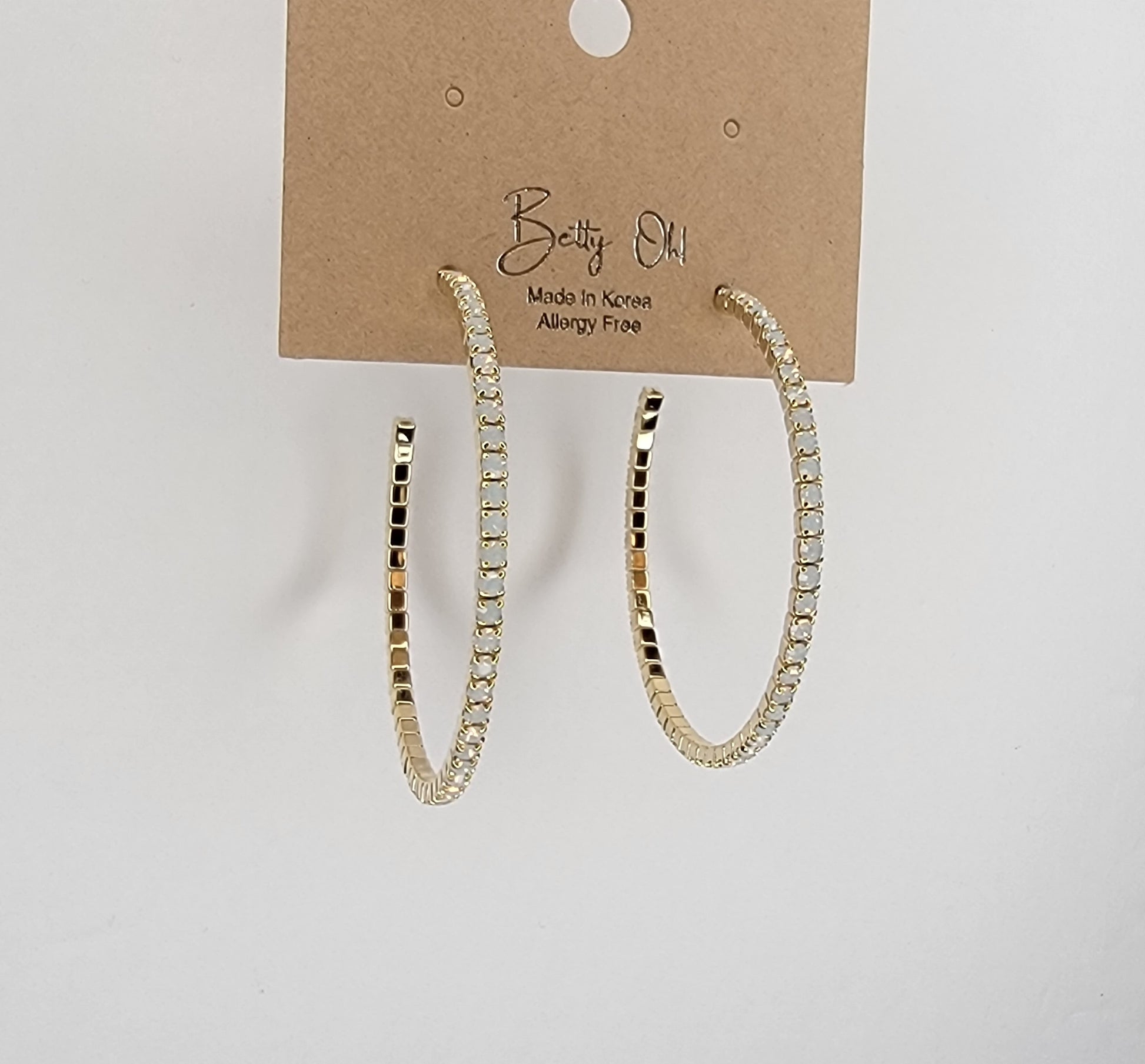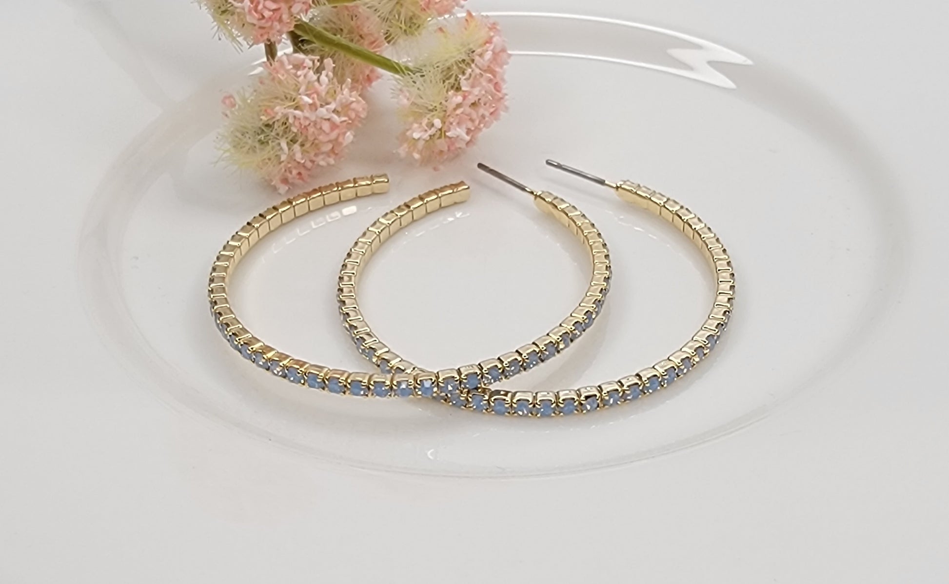 - OPAL SHADE RHINESTONE HOOP EARRINGS.