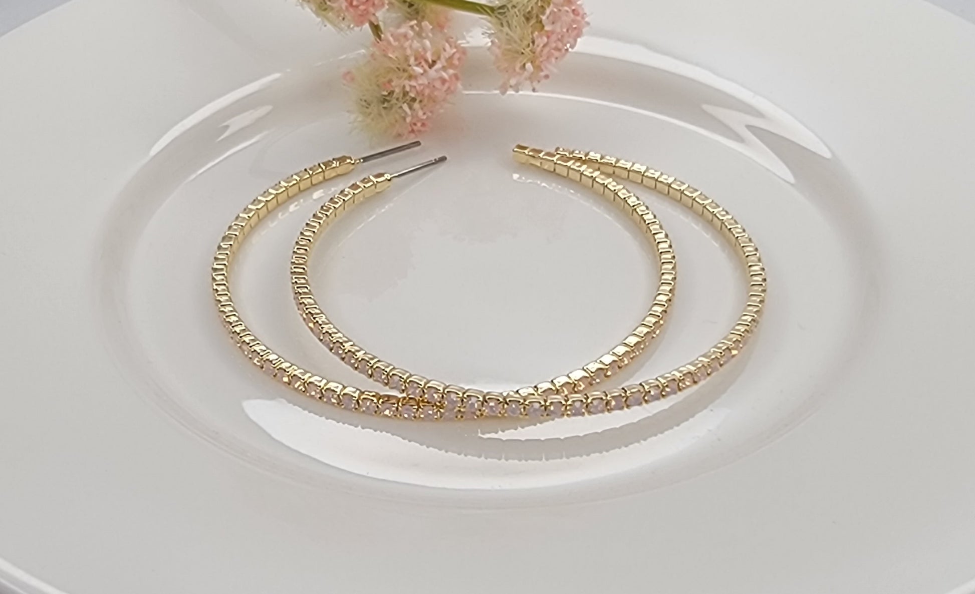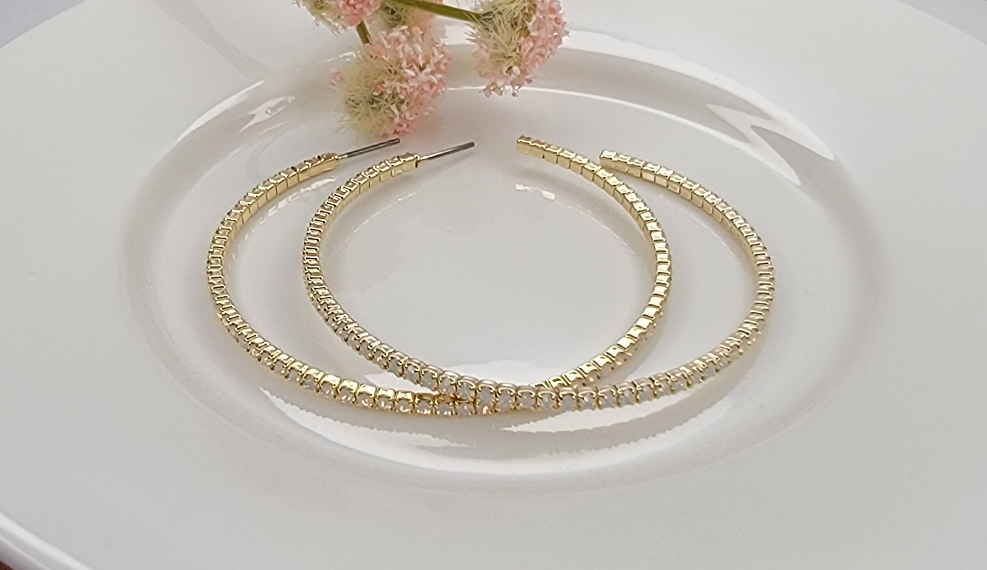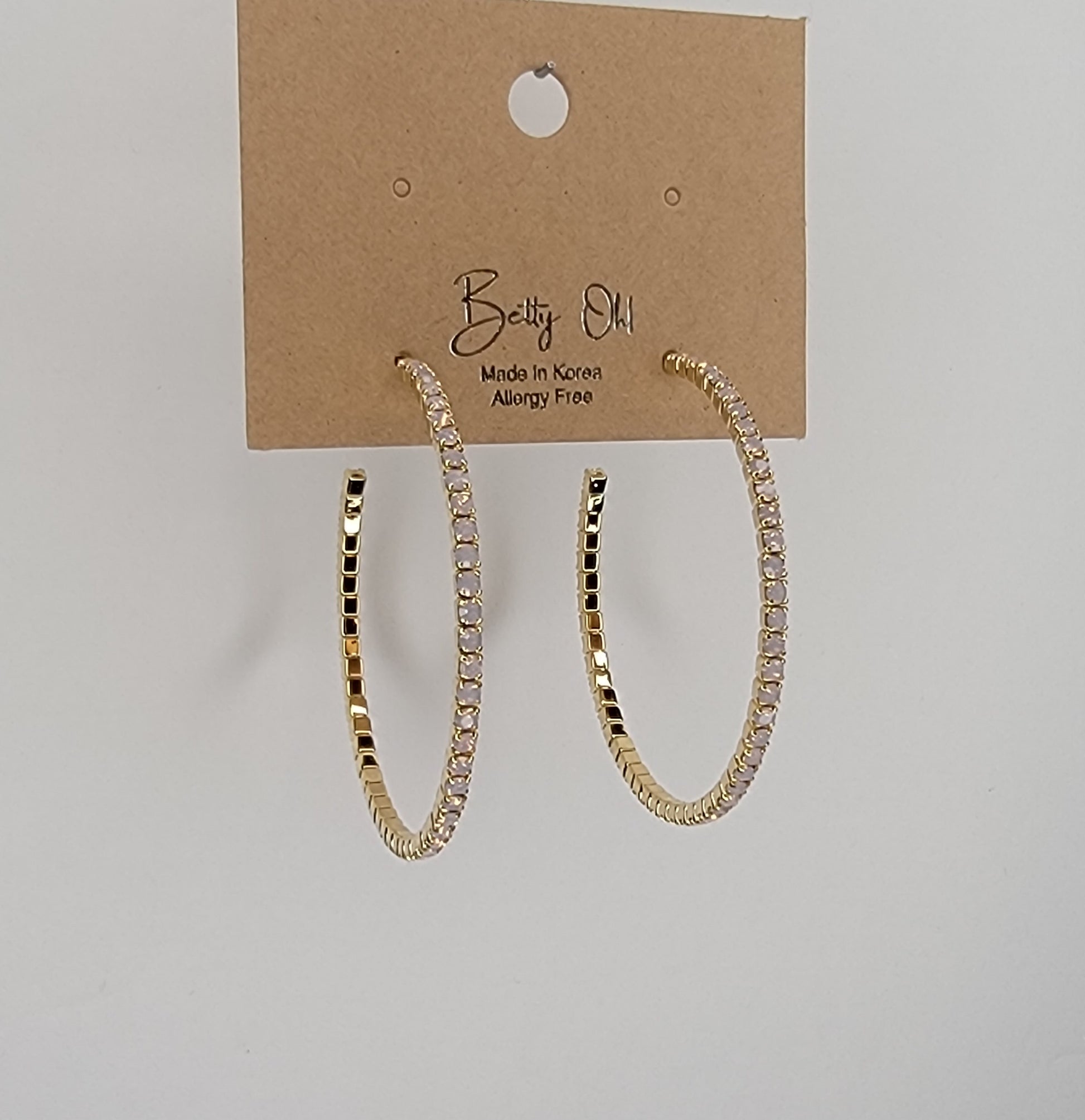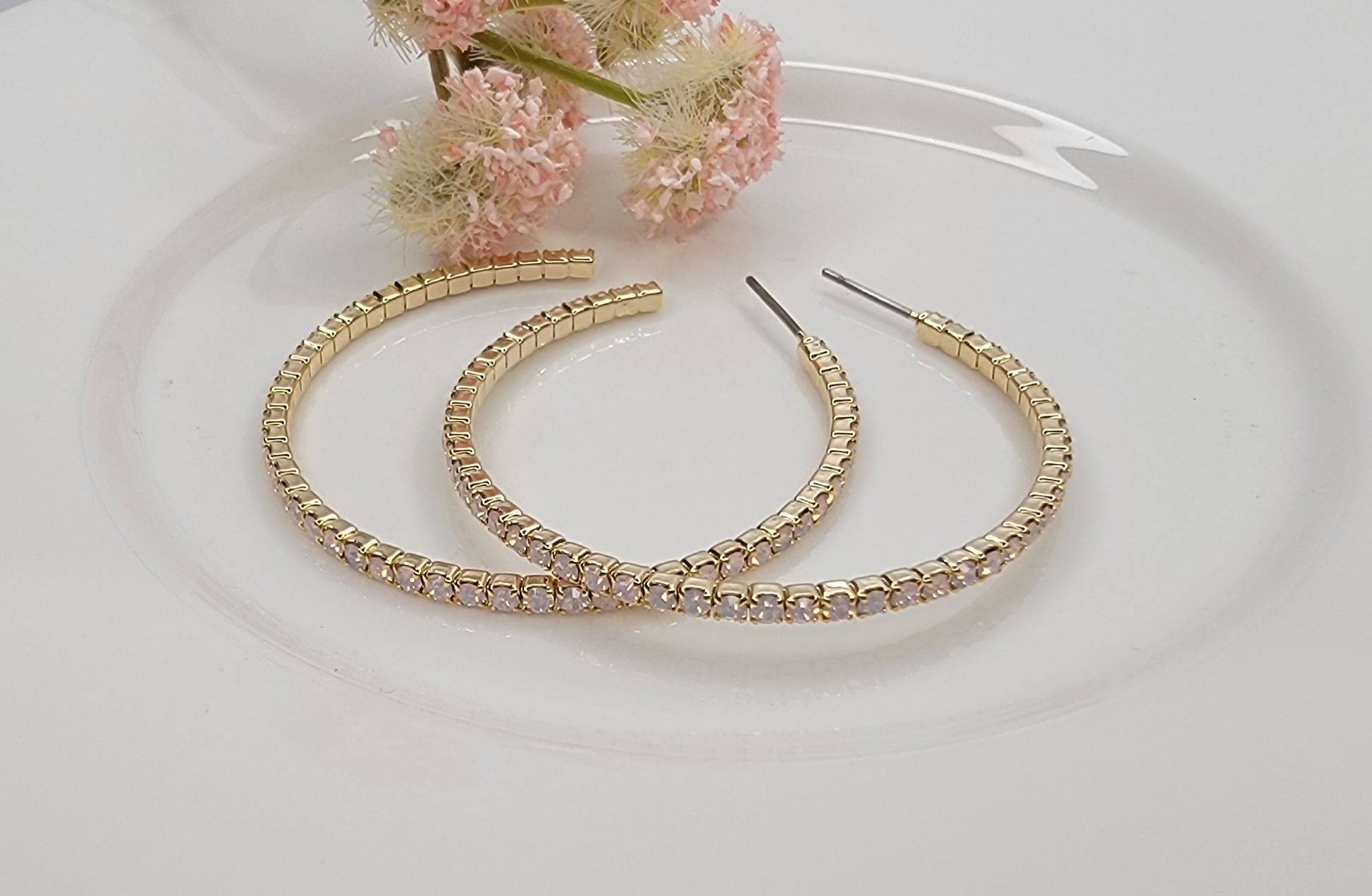 - OPAL SHADE RHINESTONE HOOP EARRINGS.