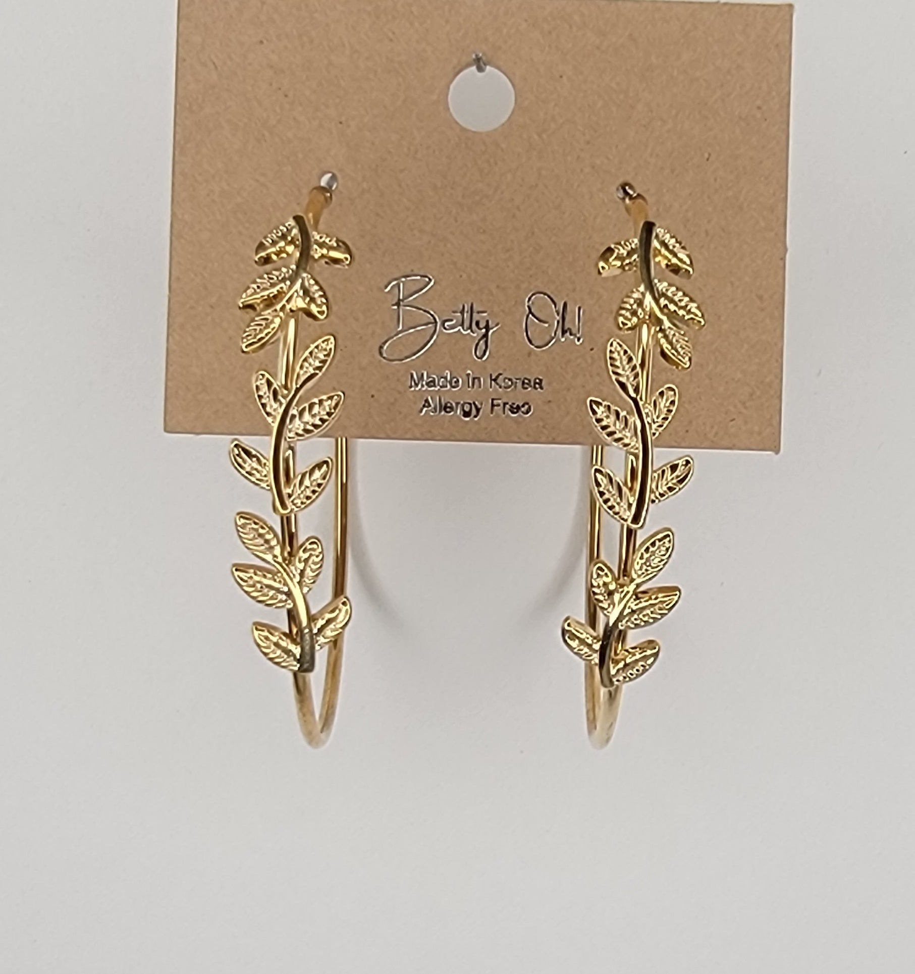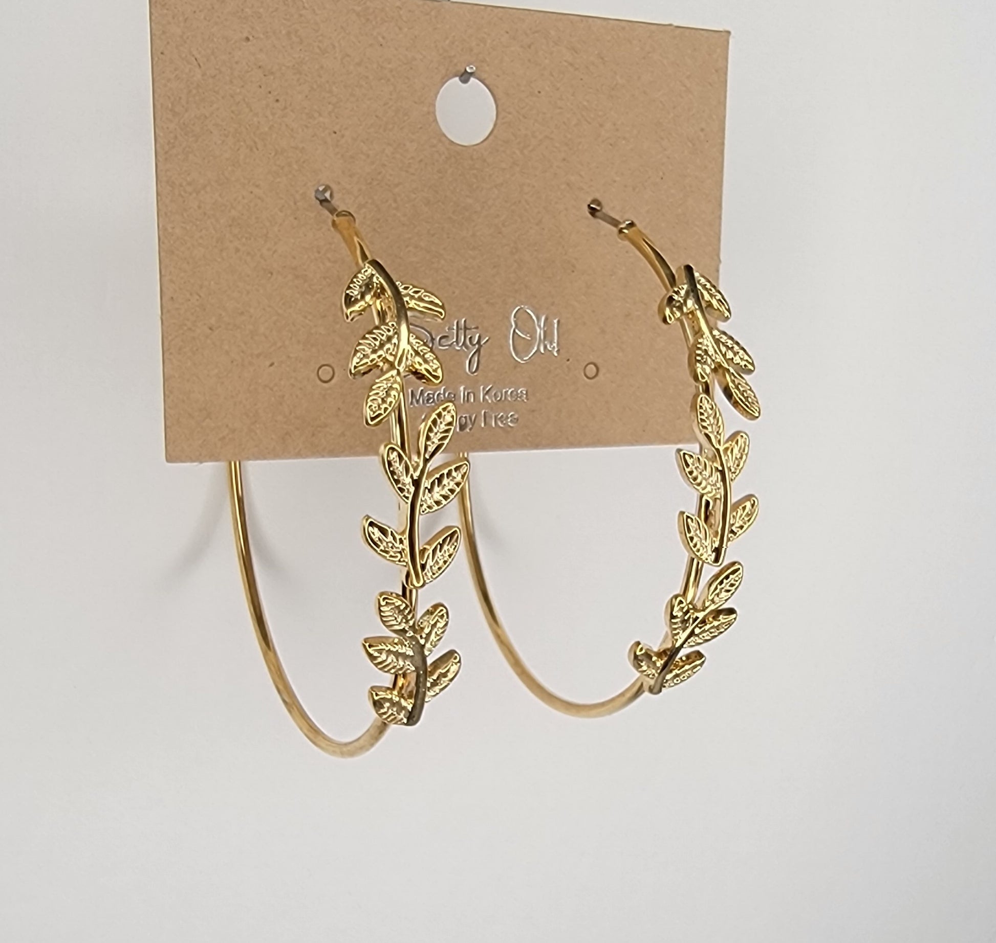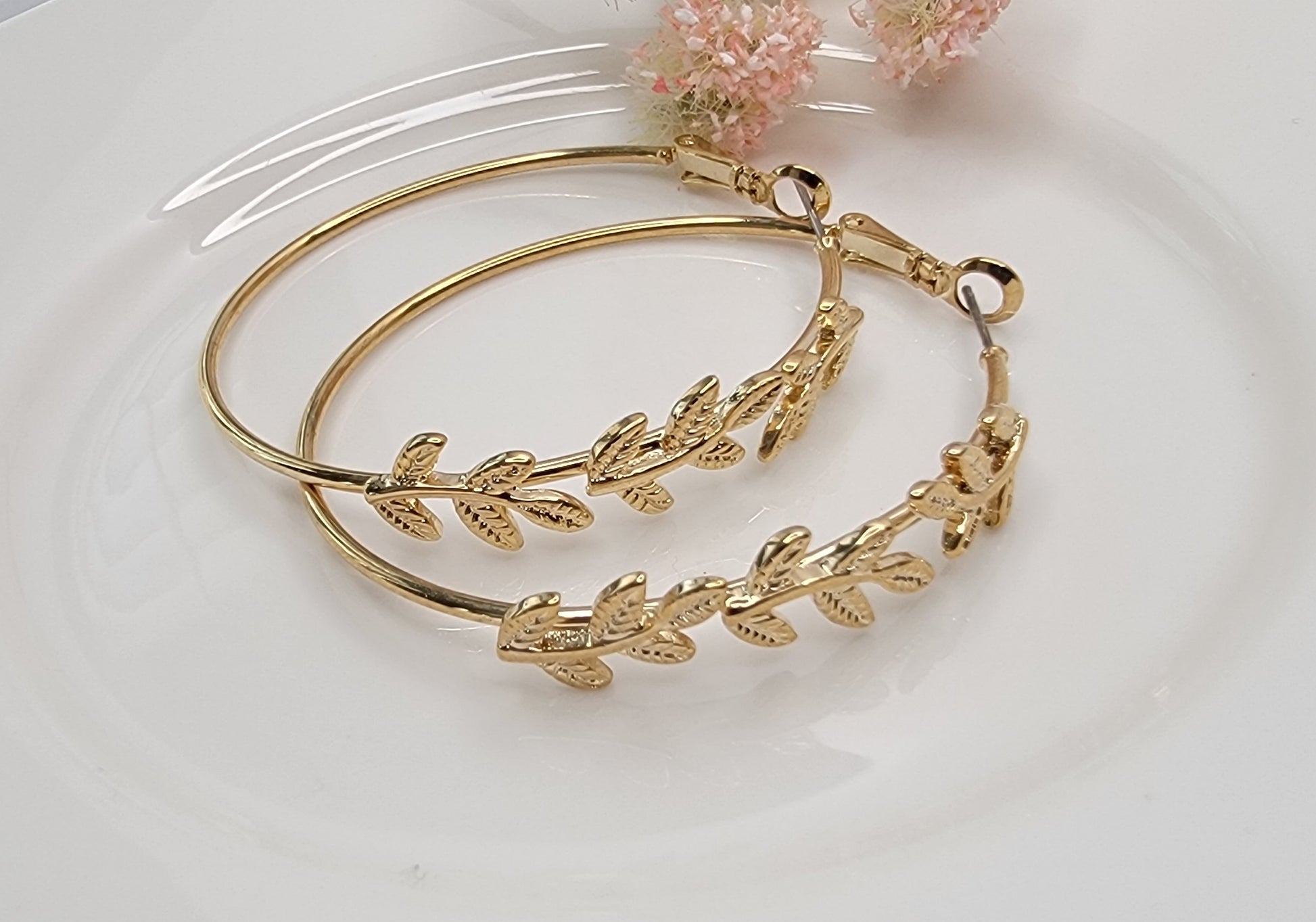 - LEAF DECORATED HOOP EARRINGS.