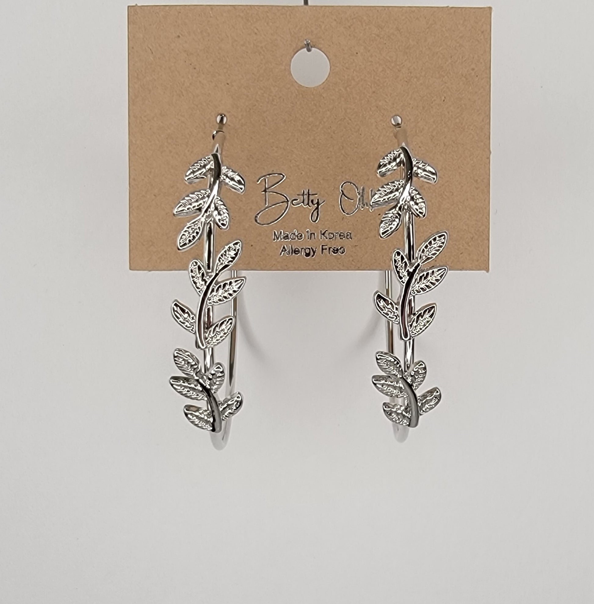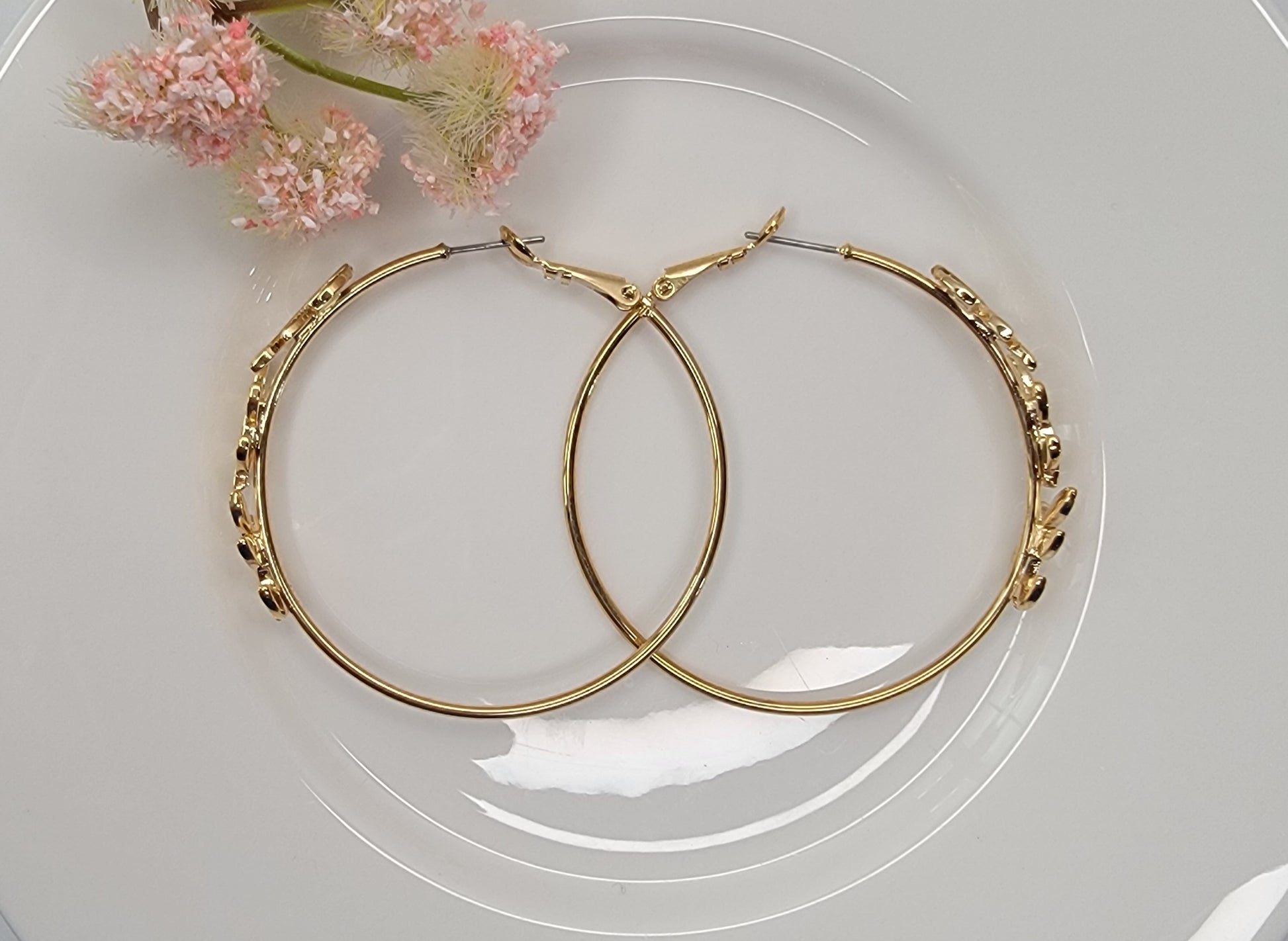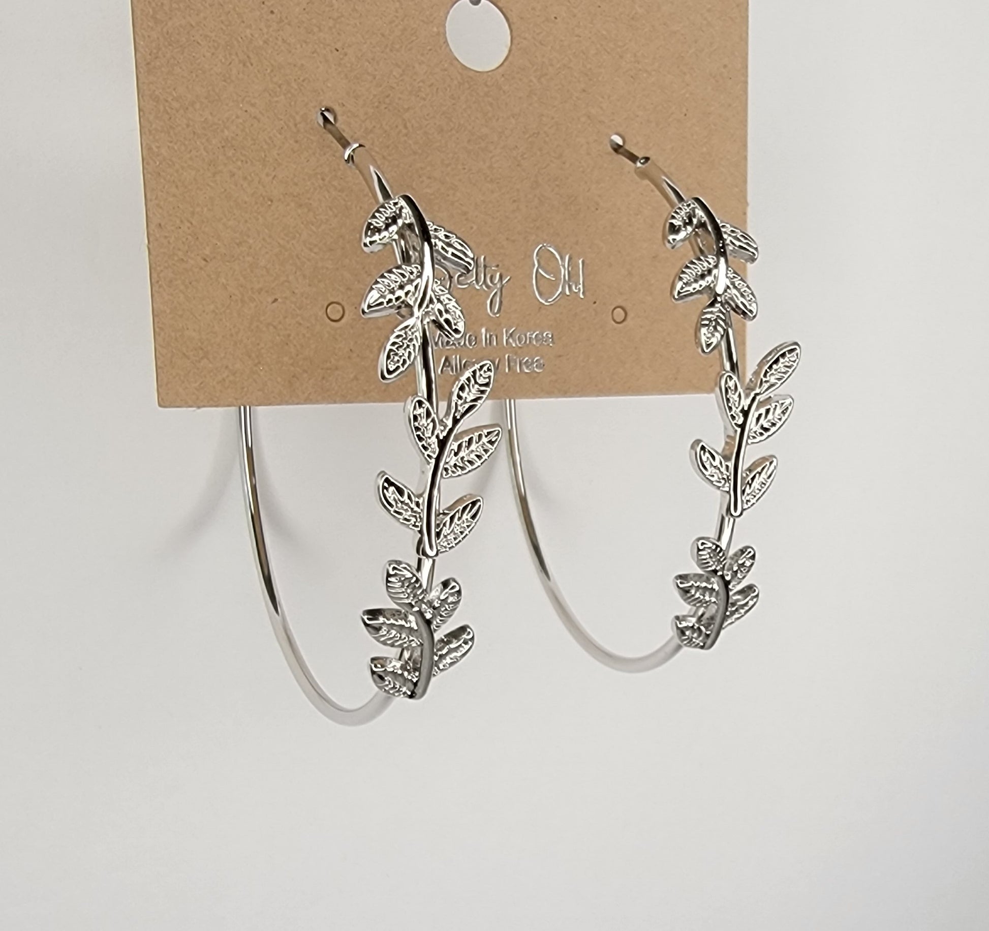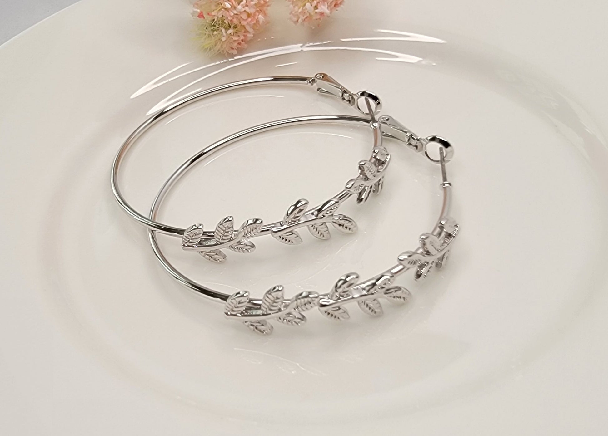 - LEAF DECORATED HOOP EARRINGS.