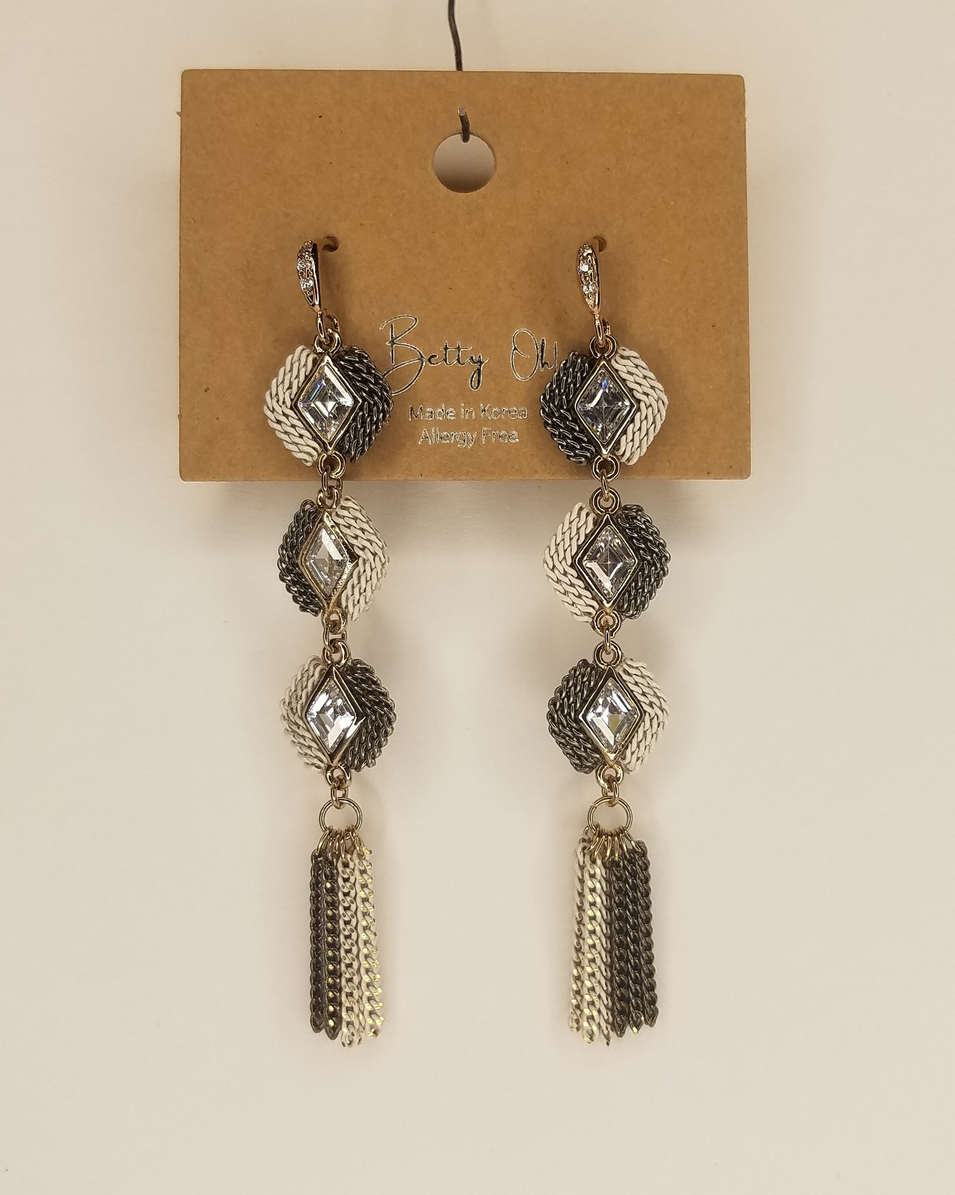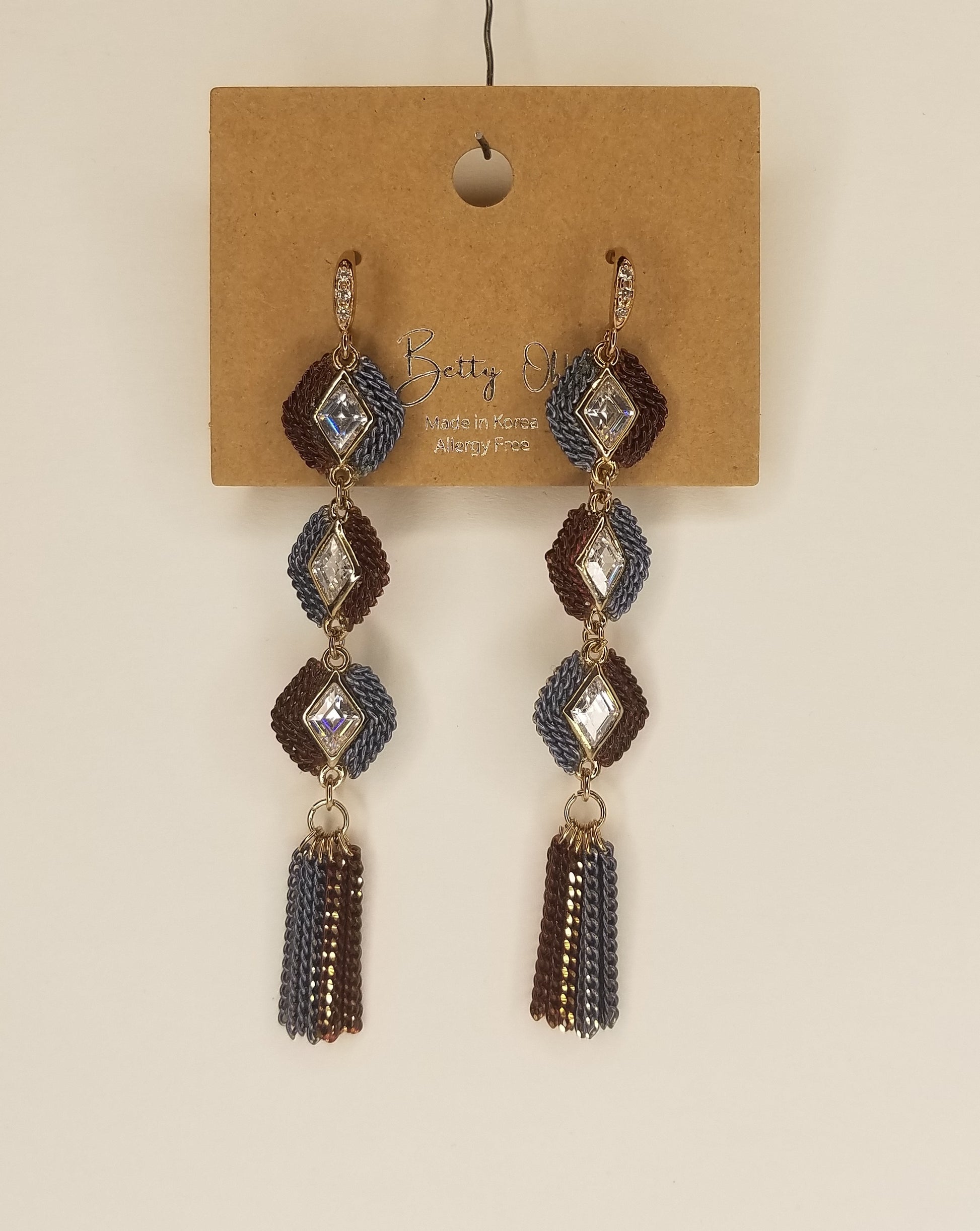 - TRI DIAMOND SHAPE CUBIC ZIRCONIA WITH TASSELS HANDMADE DANGLE EARRING.