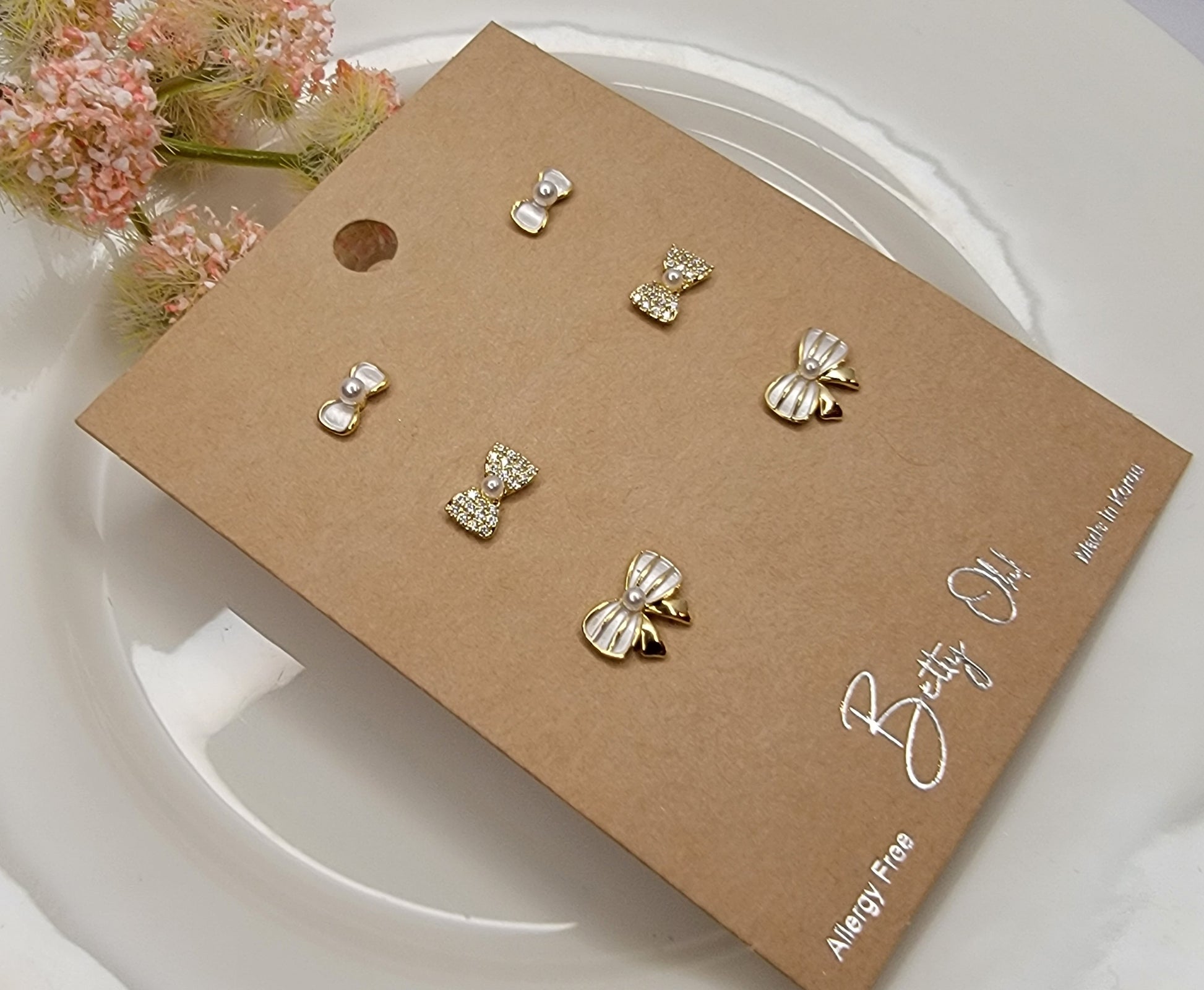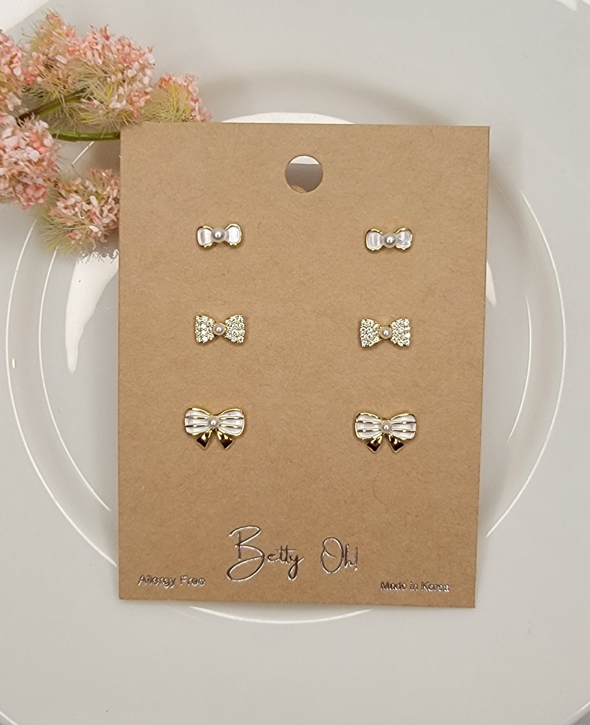 - MINI BOW THREE PAIR SET POST EARRINGS.