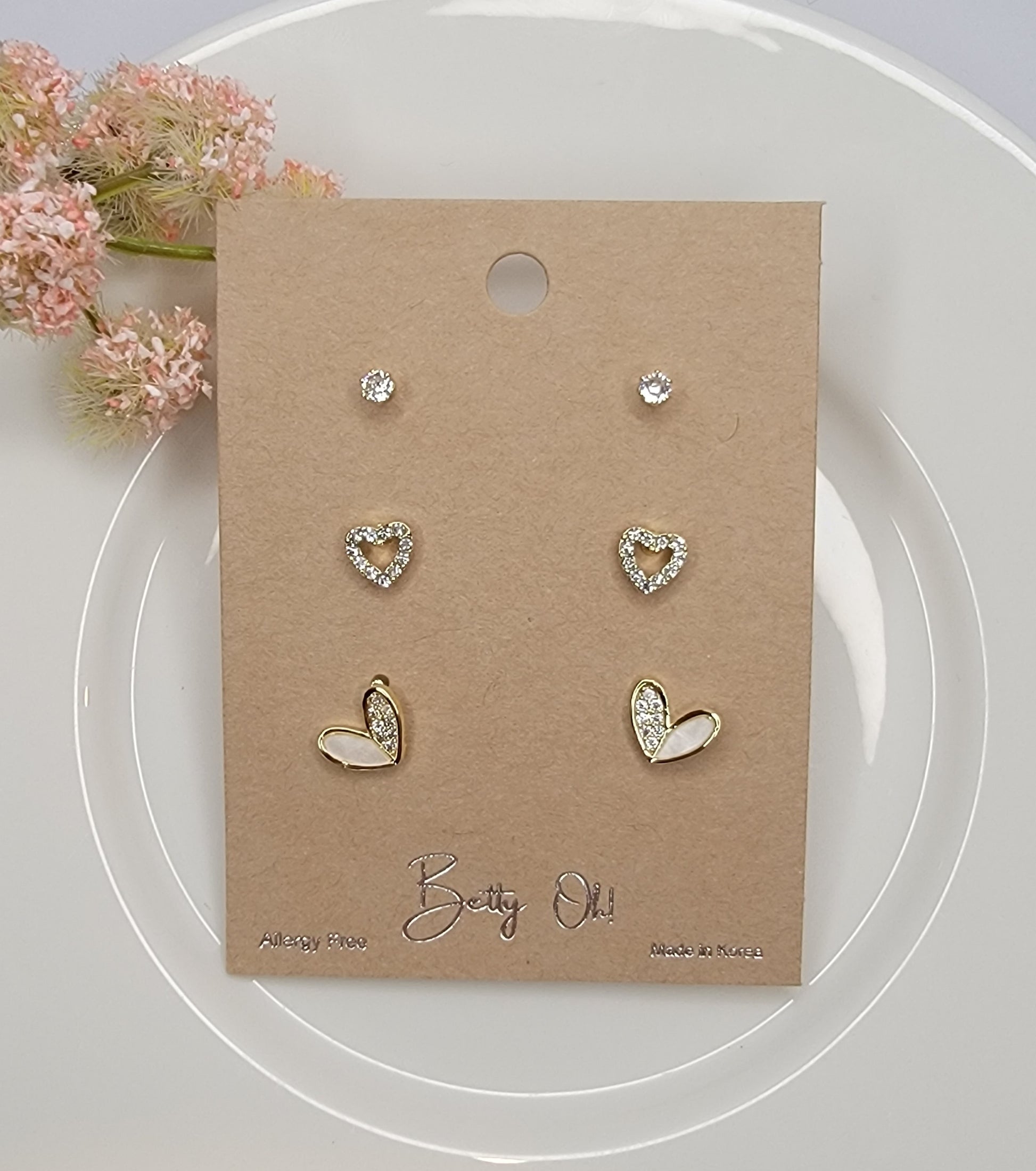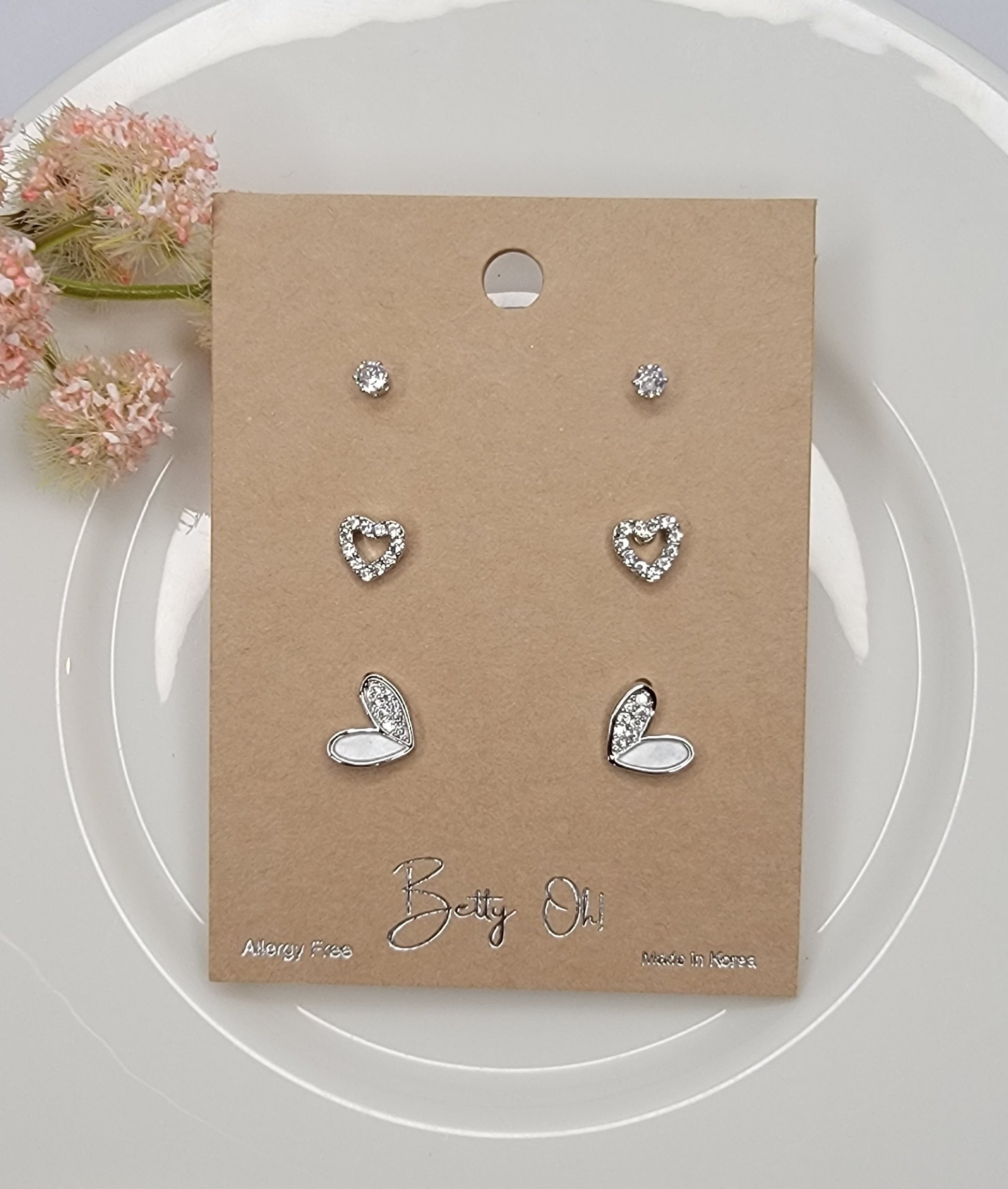- HEART DESIGN THREE PAIR SET POST EARRINGS.