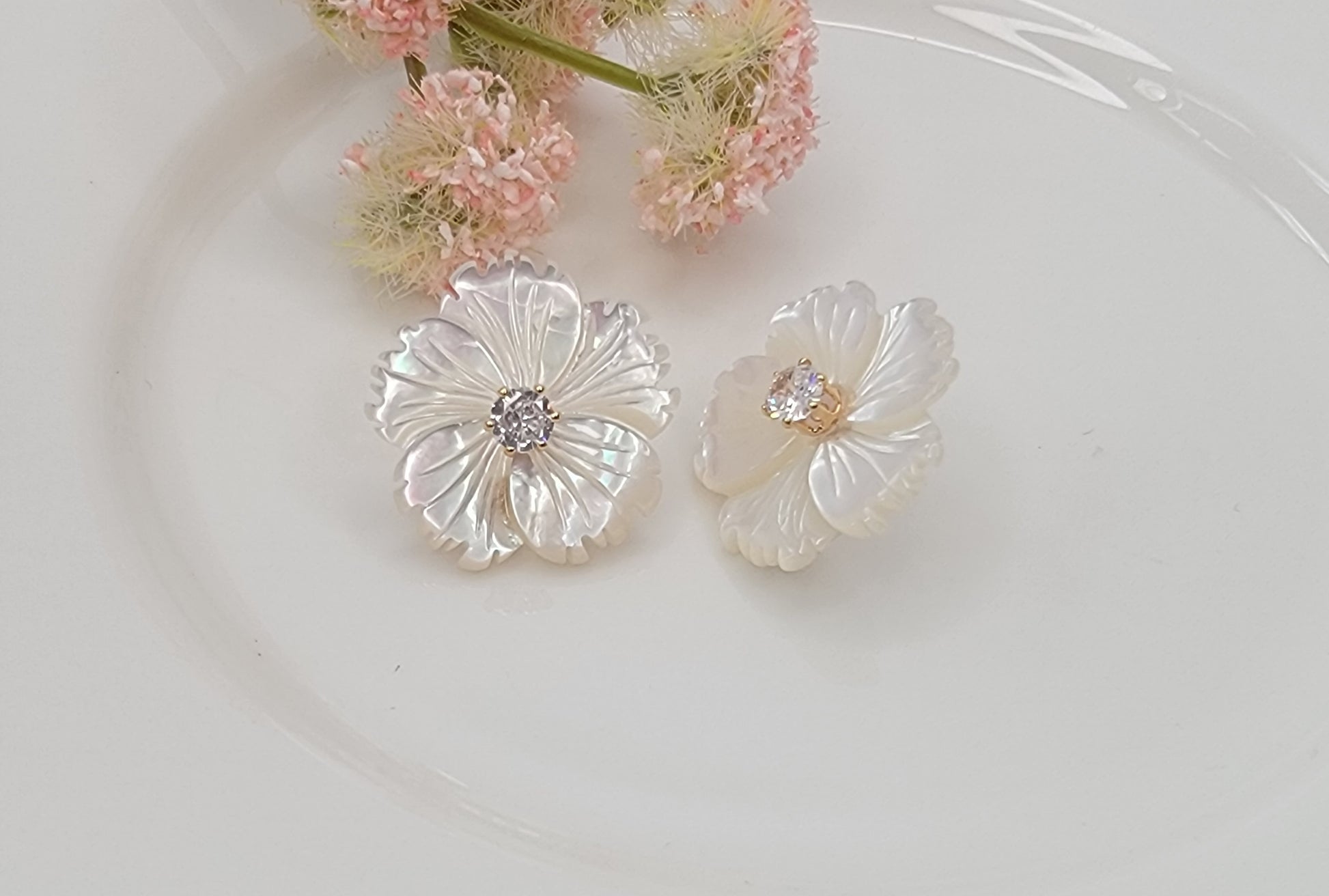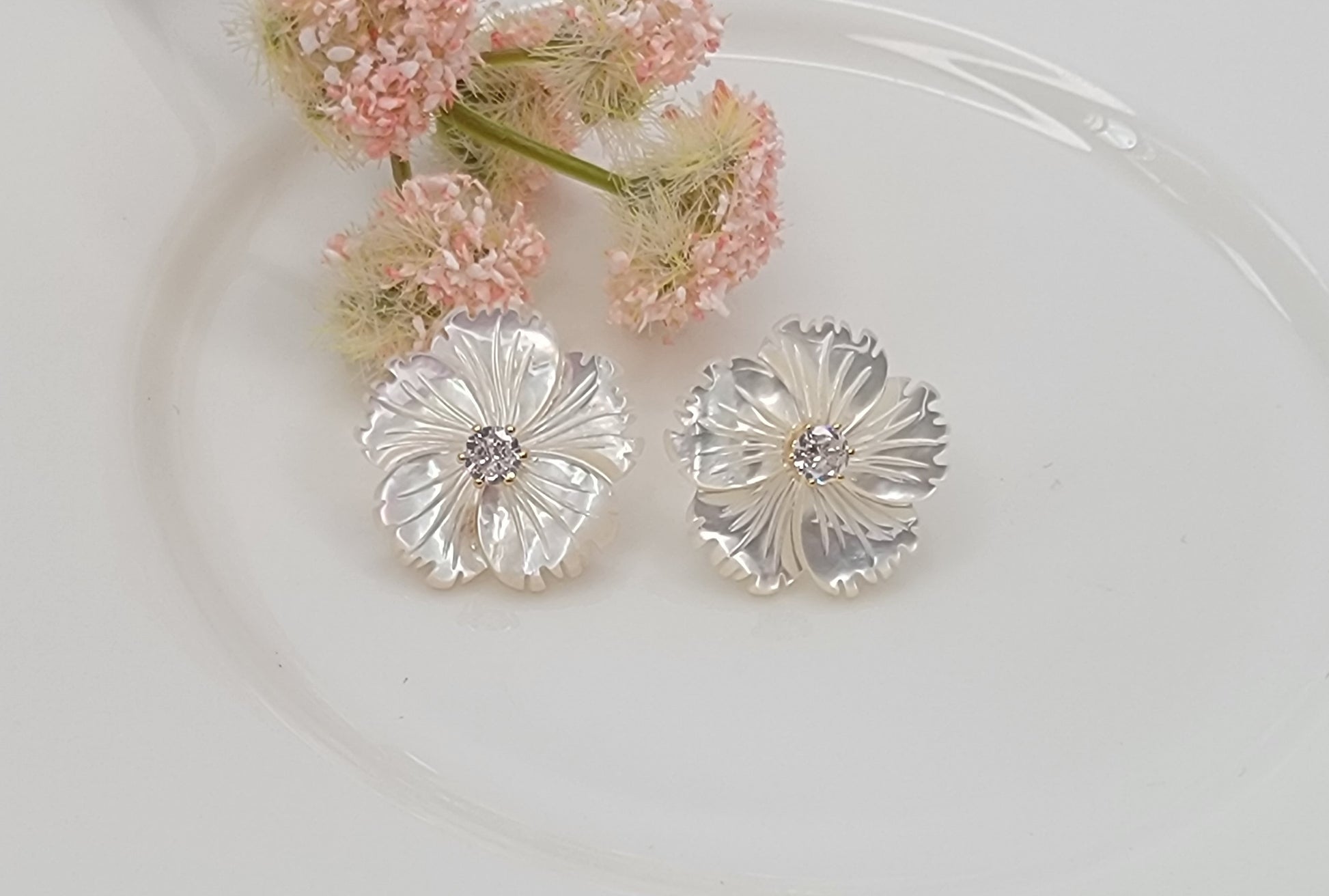 - MOTHER OF PEARL SHELL FLOWER POST EARRINGS.