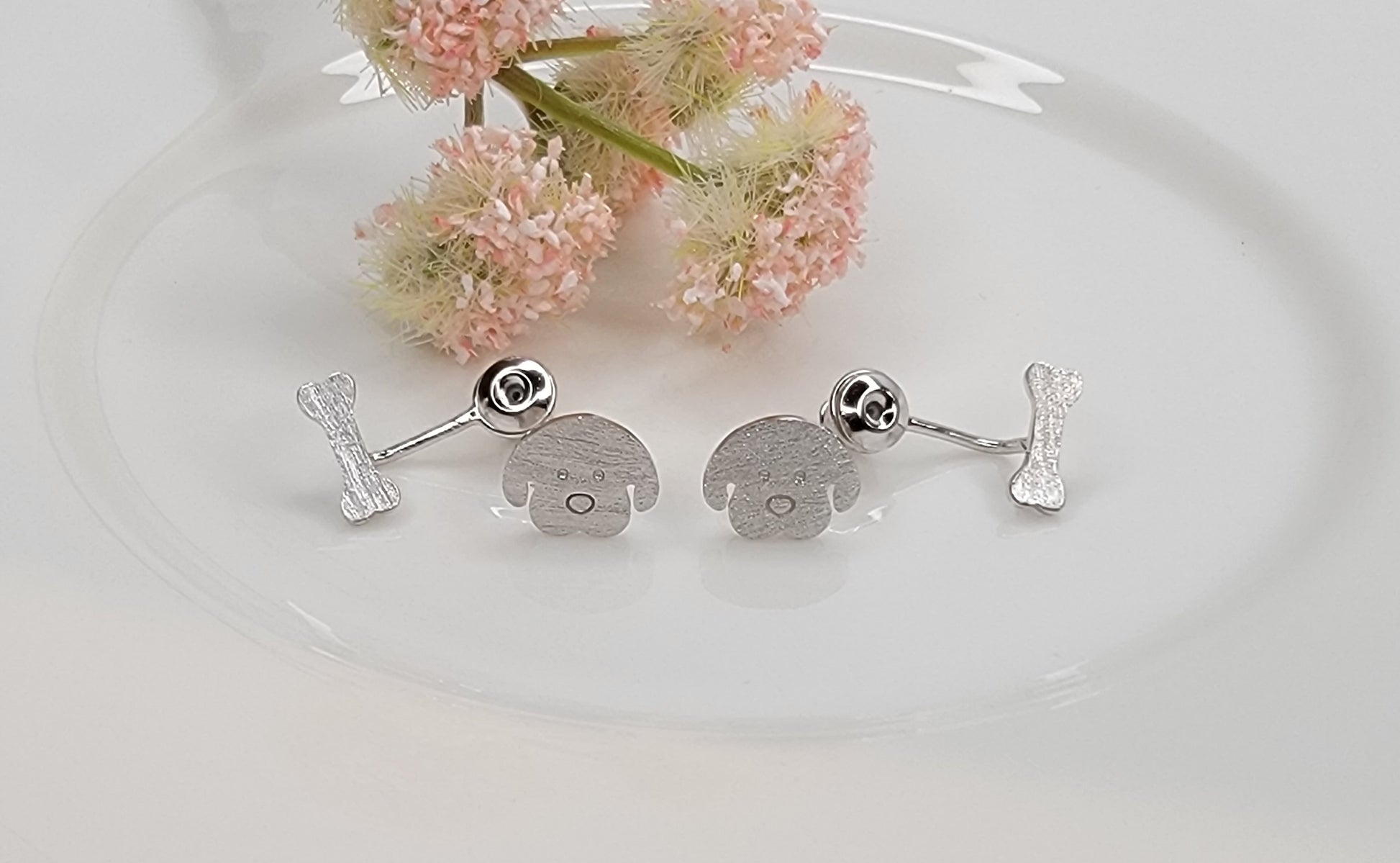 - DOG WITH BONE BACKDROP EARRINGS.