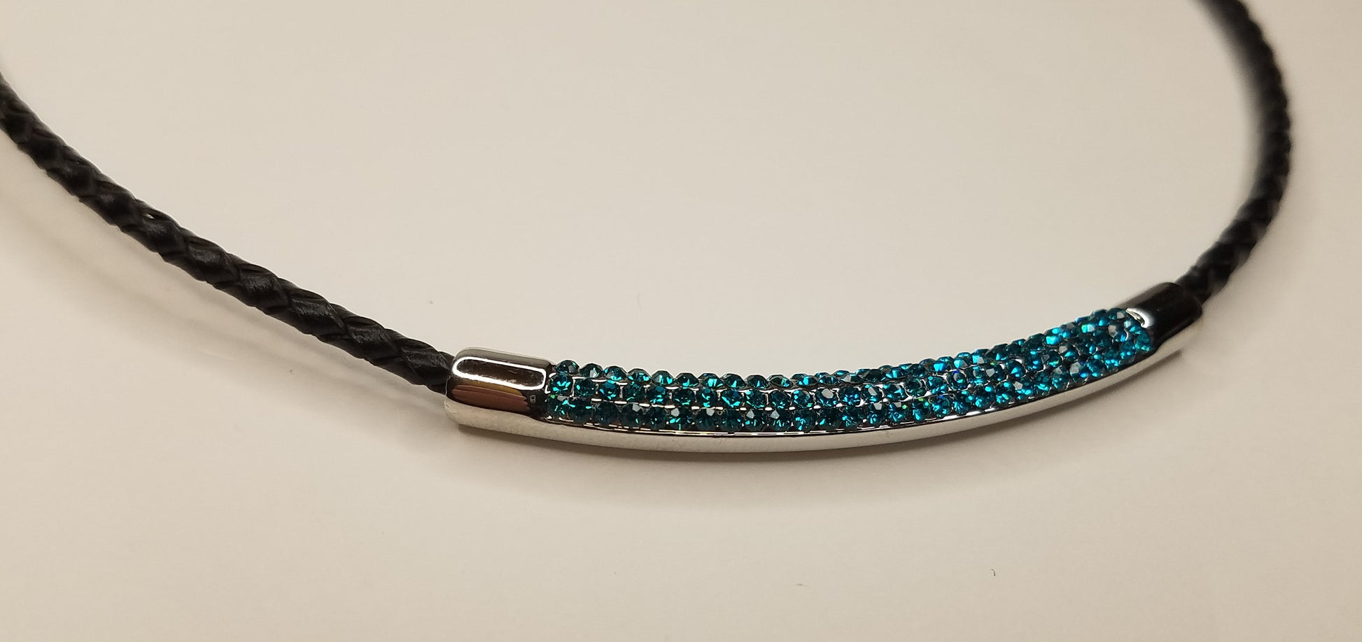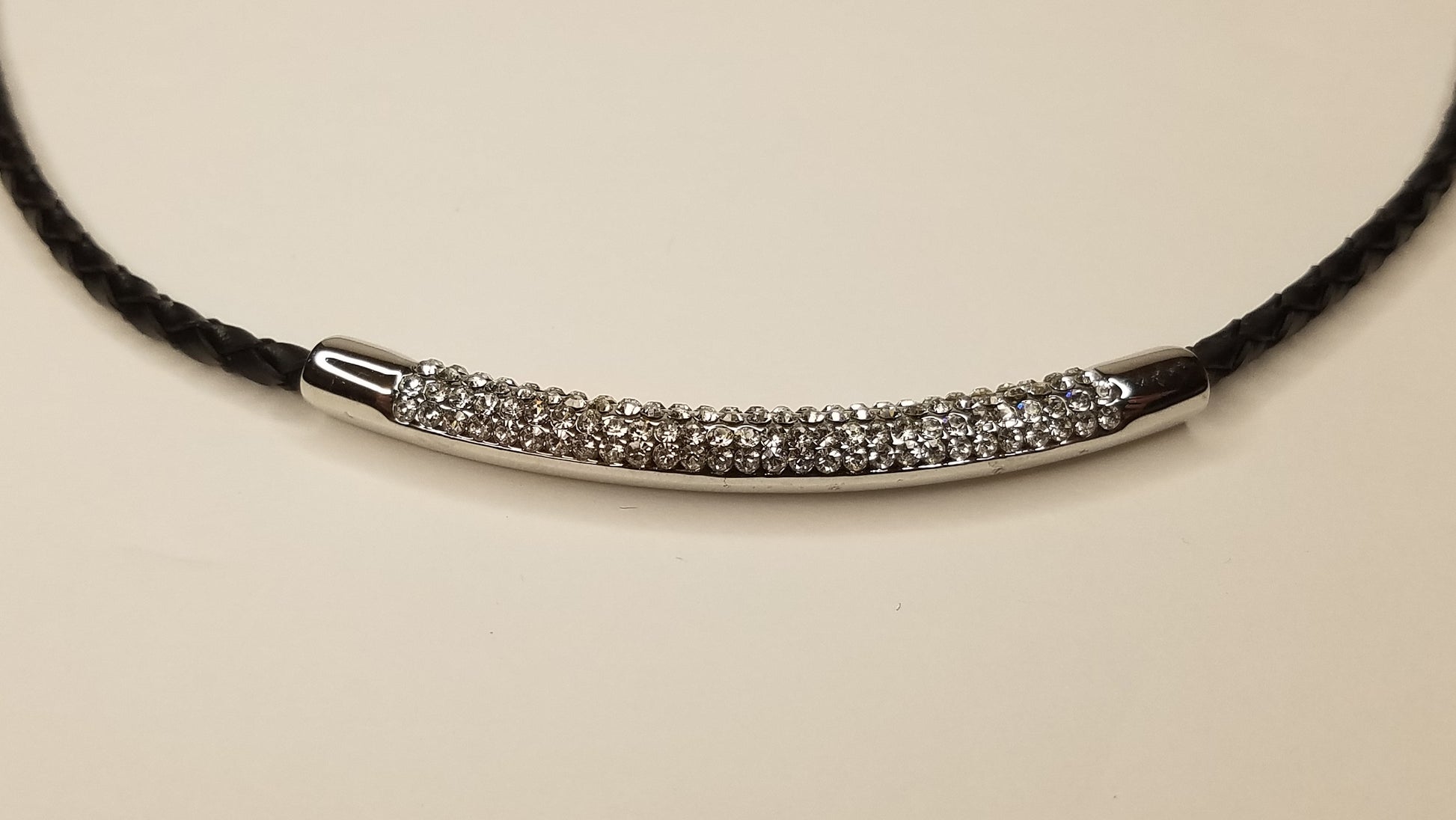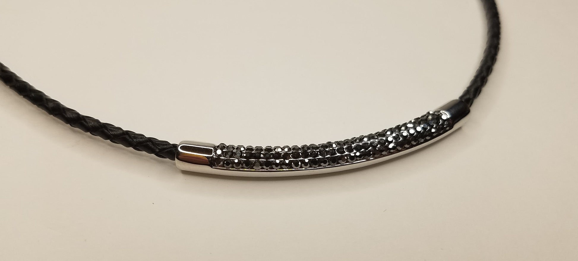 - MATERIAL: LEATHER, SWAROVSKI ELEMENTS, RHODIUM PLATED, LEAD & NICKEL FREE.